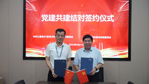 9月11日,开云官网党委与三星电子(苏州)半导体有限公司(以下简称“三星电子”)党委签订党建结对共建协议。开云官网党委书记孙红军与三星电子(苏州)半导体有限公司党委书记李成春共同签署了《结对共建协议书》。这份协议不仅承载着双方对深化校企党建合作、共同提升党建工作质量的共同愿景,更是对新时代背景下“互学互促、优势互补、资源共享、融合发展”理念的生动实践。