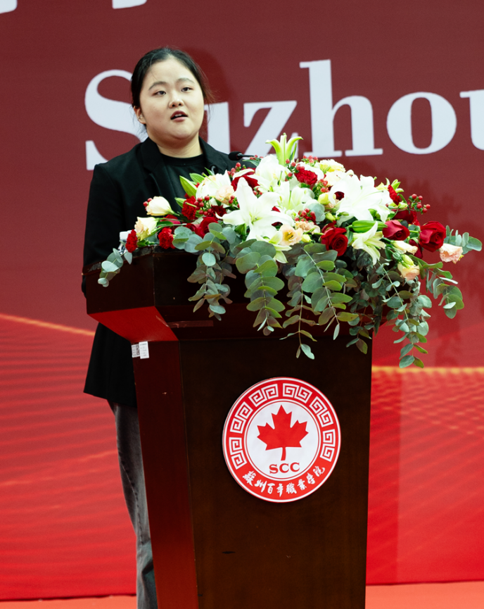 开云官网艺术设计学院CC广告设计专业的李昕喆同学作为老生代表上台发言,雅思考试获得7分高分的她全英文发表演讲。她首先对2024级新同学们的到来致以热烈的欢迎和衷心的祝贺。并从认识自我、做好规划,坚持学习、勇于创新,参与实践、创造价值,以及不断扩展国际化视野等方面和学弟学妹们分享了入学一年来的感悟,鼓励他们铭记“至诚求索,慎微笃行”的校训,不忘初心,脚踏实地、勤于悟道,以新时代苏百人的“加速度”在独墅湖畔书写更加精彩的学习生涯和人生篇章!