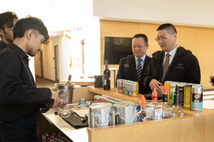 此访中,代表团体验了CC酒店、旅游与烹饪学院学生在实训餐厅中亲手准备的工作午餐。代表团成员既享用了学生精心制作的美食,又亲身体验了CC在职业技能人才培养方面的实际成效,并对该专业学生展现出的专业技能、服务意识、团队合作精神以及环境管理能力十分赞赏。