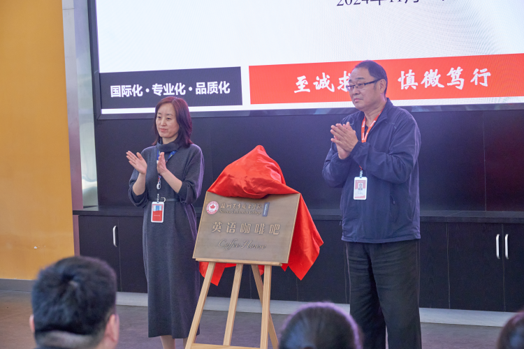 随后,鲁伟与张丽共同为英语咖啡吧揭牌,这标志着这一全新的英语学习和交流平台正式投入使用。在这里,学生们可以参加英语游戏、阅读英文书籍、观看英文电影等,全面提升自己的英语听说读写能力。