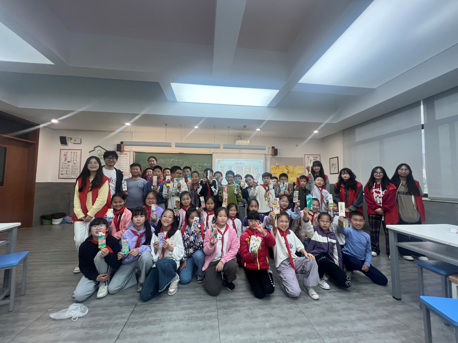 课上小朋友们积极参与,发散自己的思维,志愿者们以身示范,步步引导,小朋友们认真学习,上课积极回答问题,并且通过绘画呈现出自己喜欢的季节和卡通人物。孩子们在“小老师”们的引导下,绘制出了一张张精美的作品,他们洋溢的笑脸是对此次活动最大的肯定。