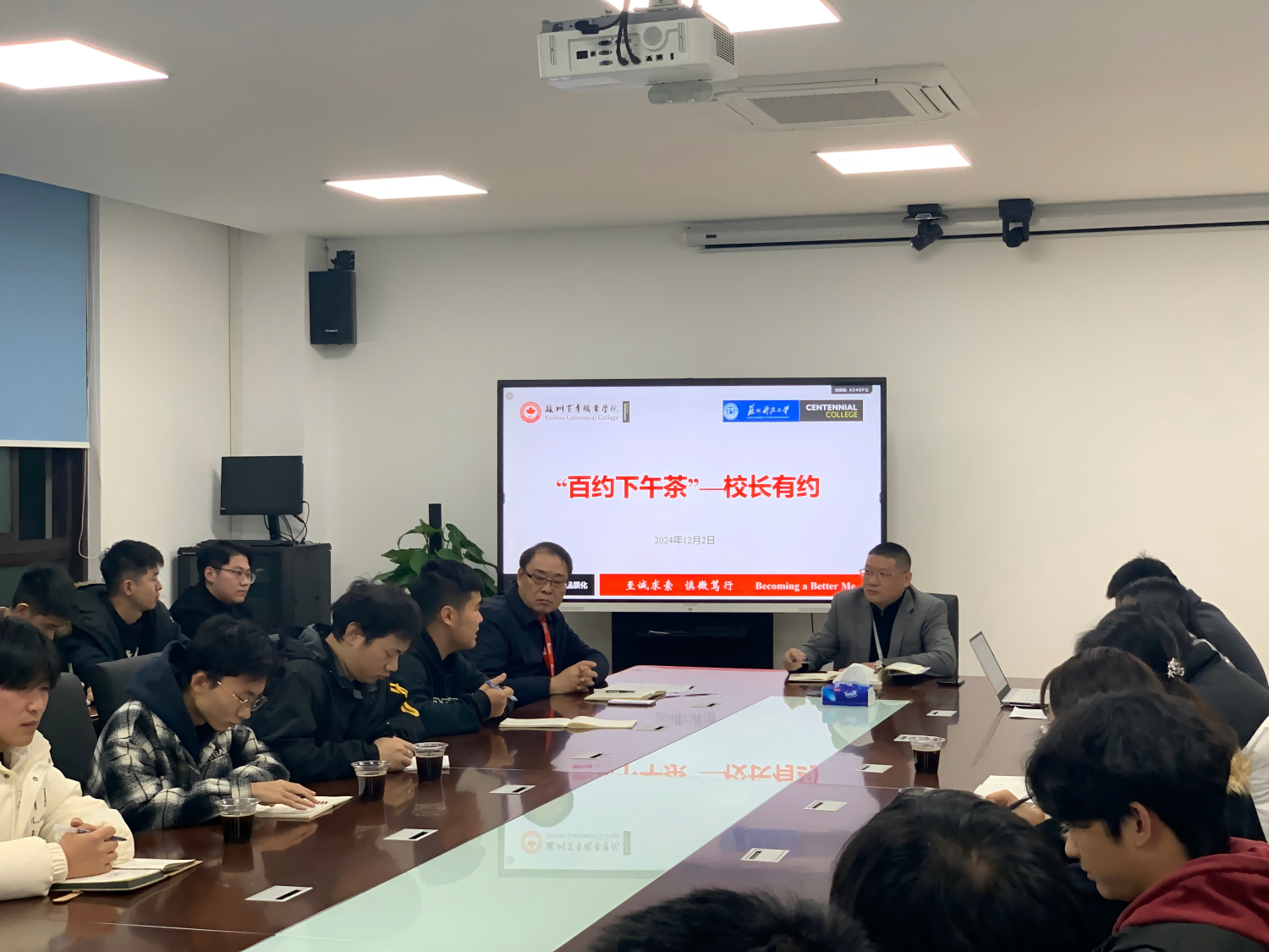 2024年12月2日,开云kaiyun体育“‘百’约下午茶——校长与你面对面”在至诚楼512顺利举行。校长李世明与40余名学生干部代表进行了面对面的真诚交流,并广泛听取意见和建议。