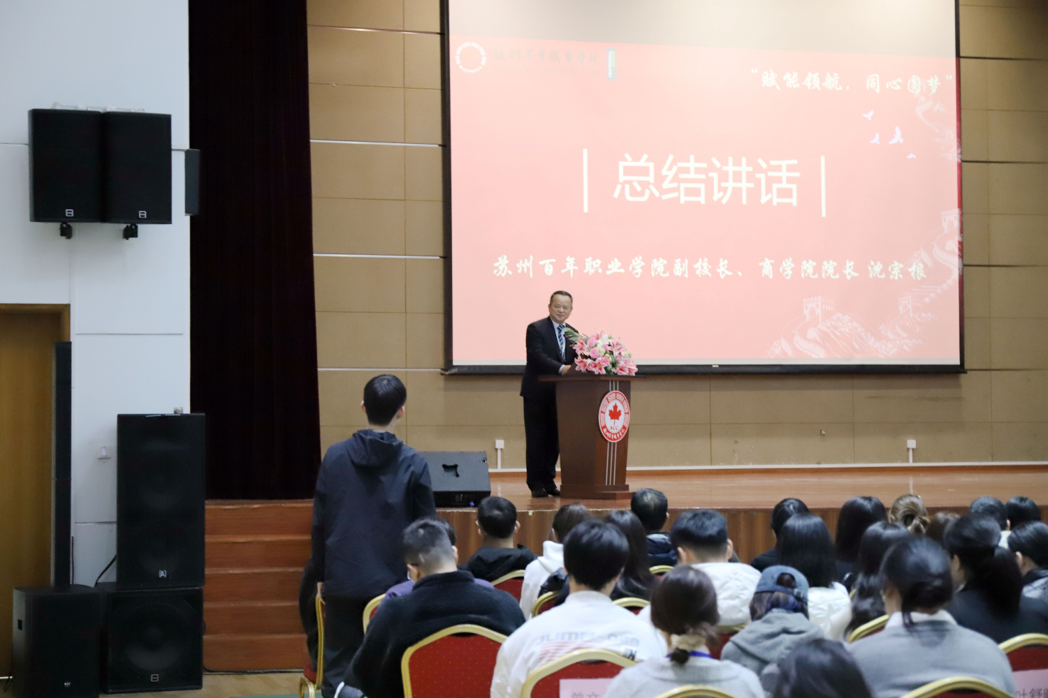 大会最后,沈宗根进行了总结讲话。他对获奖的集体和个人表示祝贺,并对全院师生提出殷切希望。他通过“为什么要上大学?”和“大学需要学什么?”两个问题与学生互动,强调上大学不仅为谋生,更要学会做人、学习技能,向学生分享了在大学应学习的10项内容。对于教师,他强调了教书育人的重要性并鼓励教师为学生着想,时常进行自我反思,引导师生要“think like a farmer”,像农民一样思考,耕耘好自己的人生天地。