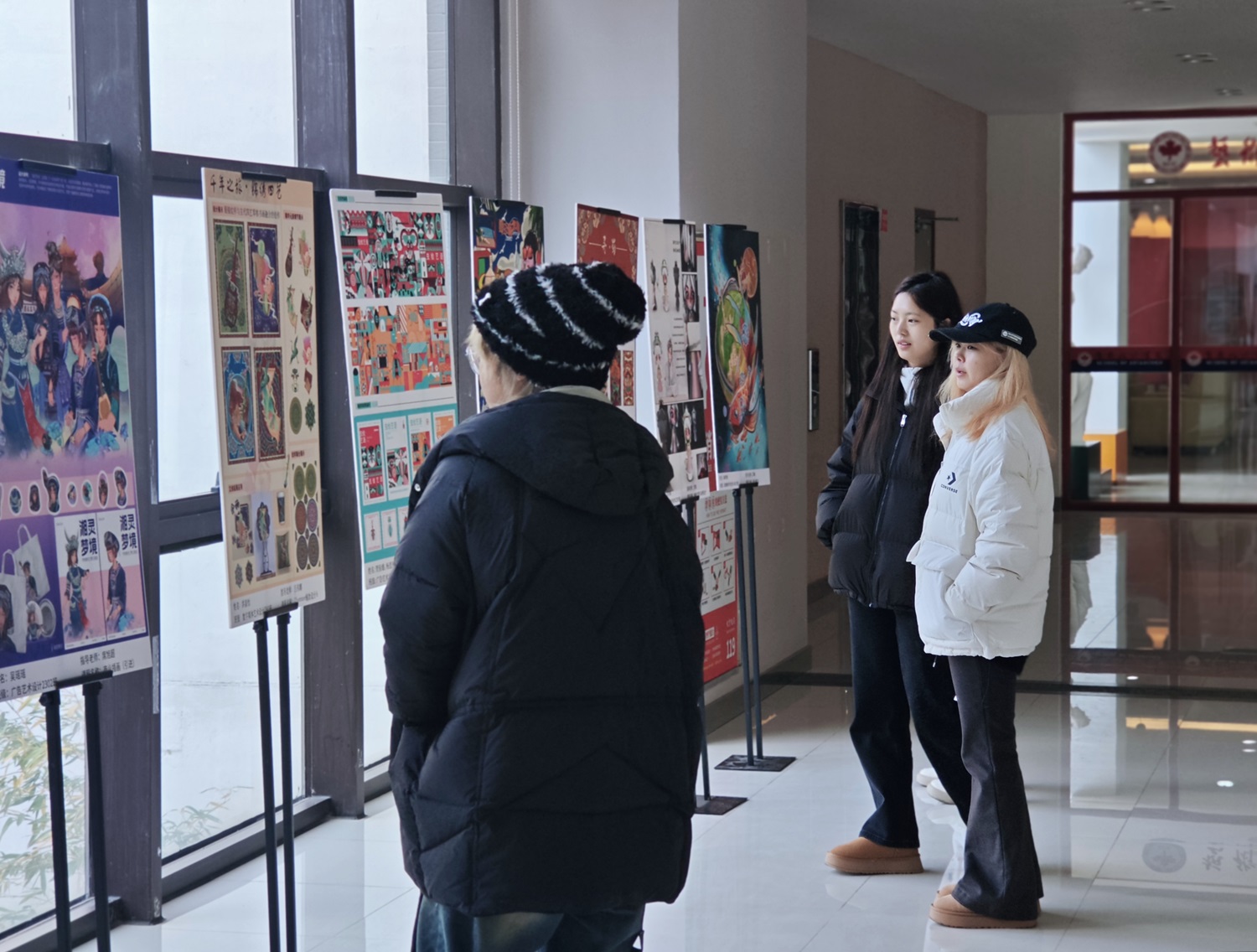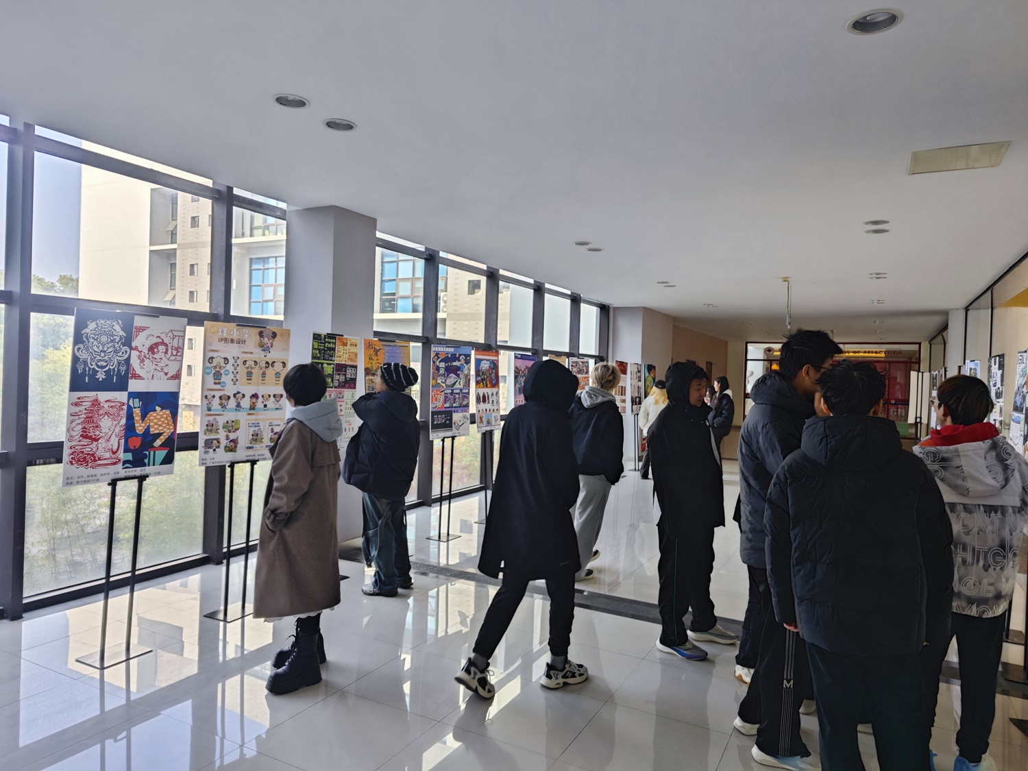 展览现场,学生们驻足于各自专业的展区前,观赏并交流着在展作品。他们时而低头沉思,时而热烈讨论,展现出对艺术设计的浓厚兴趣和热情。这些作品展示了学生们对色彩、线条和构图的深刻理解,每一幅作品都讲述着一个独特的故事,不仅展示了学生们的专业技能,更体现了他们对社会、文化和环境的深刻洞察。
