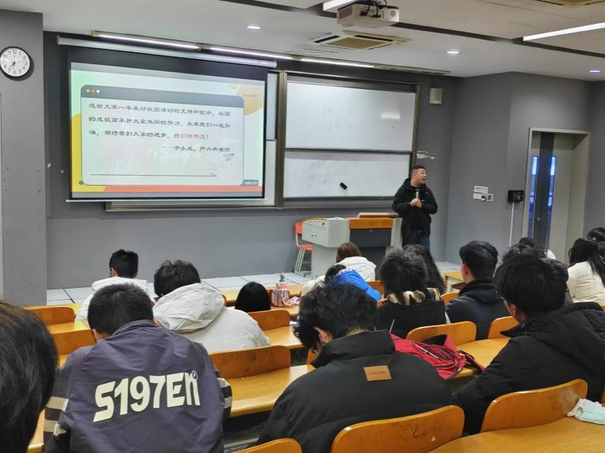 会议伊始,博雅学院于永成老师对本学期社团工作进行了全面总结。他详细介绍了本学期社团活动、高数竞赛等方面的开展情况,肯定了社团成员对于社团活动的参与情况,指出了存在的不足,并详述了下学期工作规划。
