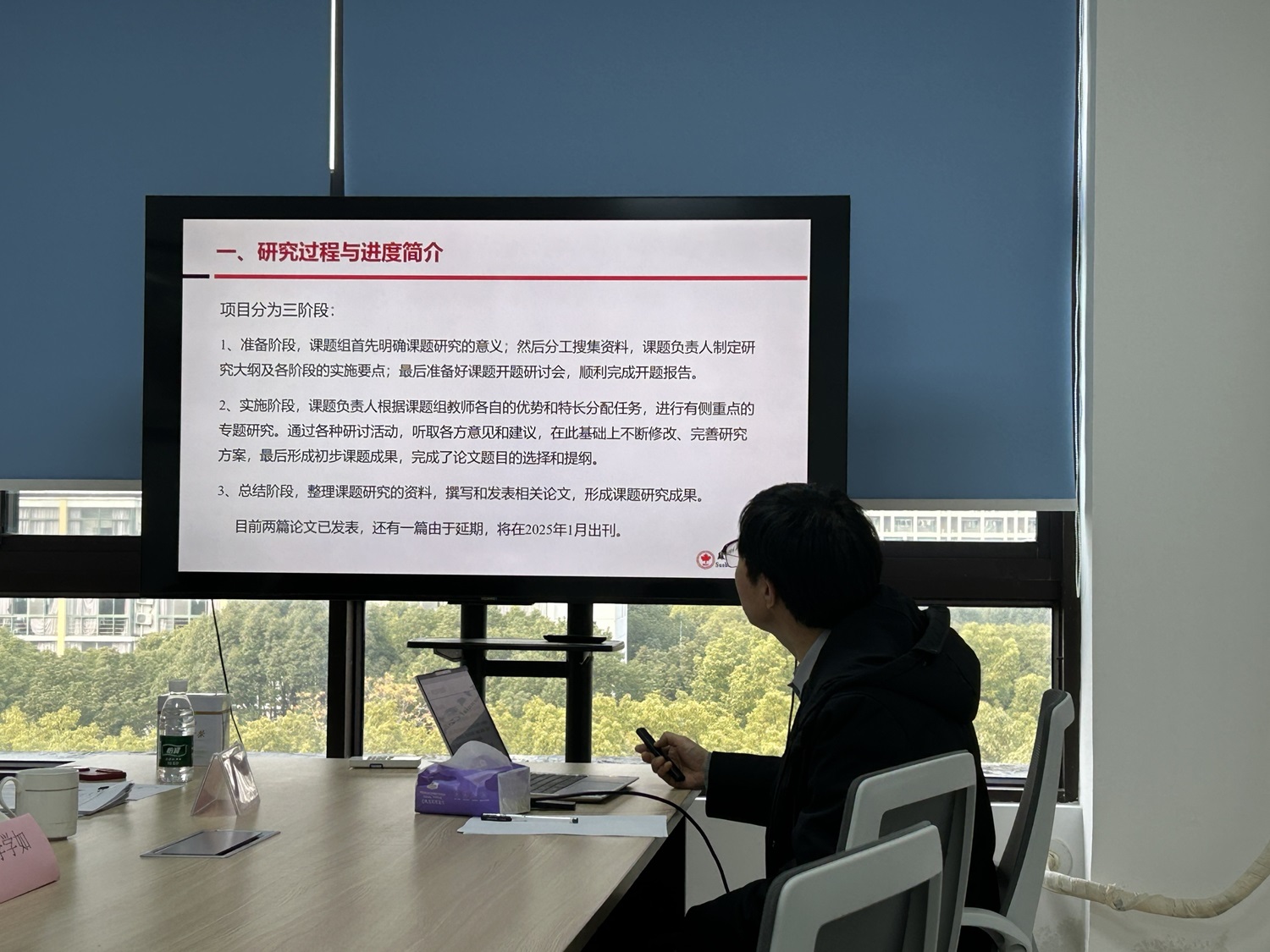 项目负责人从课题的研究目标、项目的完成情况、已取得的成果、所面临的问题及思考进行了汇报。现场专家结合自身项目实施体会,从项目研究的创新性、规范性、实用性等多个维度对结项工作进行了经验分享,并针对哲社课题研究的定位、破题、开展以及结题等系统性研究问题进行了指导。项目负责人认真听取了评审专家组的意见,表示在今后的研究中不断完善方式方法,继续深挖项目创新点,强化其学术价值和社会价值,通过更加详实的材料展现项目的学术影响力和实际应用效果。
