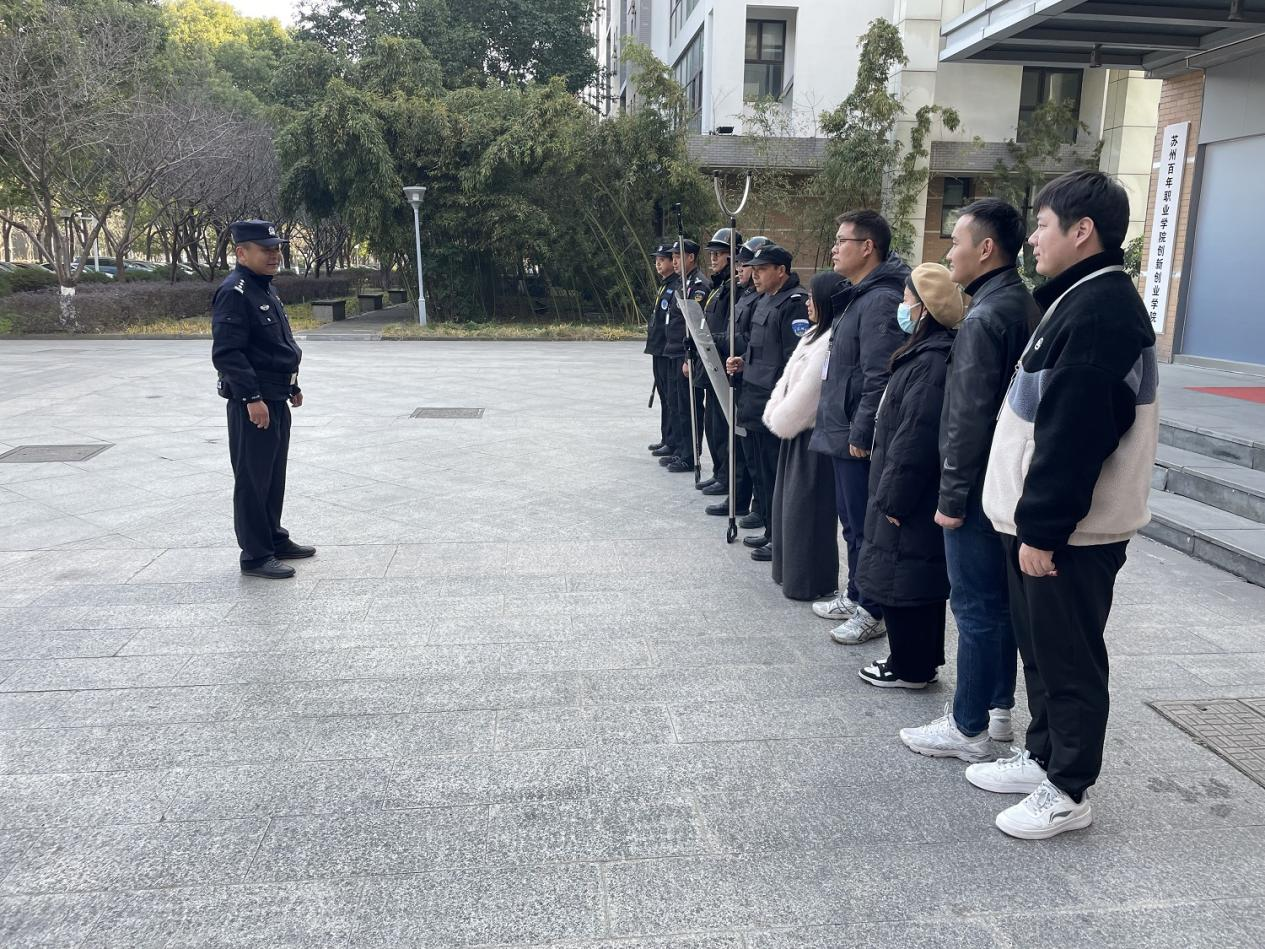 演练开始前,周敏首先向大家介绍了当前的反恐形势和防暴技术,包括各类防护器械的使用方法,队员站位和协同配合等关键要素。首先1名不法分子欲(物业经理扮演)持械闯入校园北门,门卫发现后第一时间拨打110报警,同时呼叫增援,执勤安保人员立即出动,利用盾牌、防暴钢叉、抓捕器等防暴器械,在不法分子进入北门后迅速将其控制。与此同时,巡逻警车和防暴冲锋车赶到学校,警务人员与学校安保人员密切配合,将不法分子制服并押走,警情随之解除,学校很快恢复了教学秩序,演练活动圆满结束。