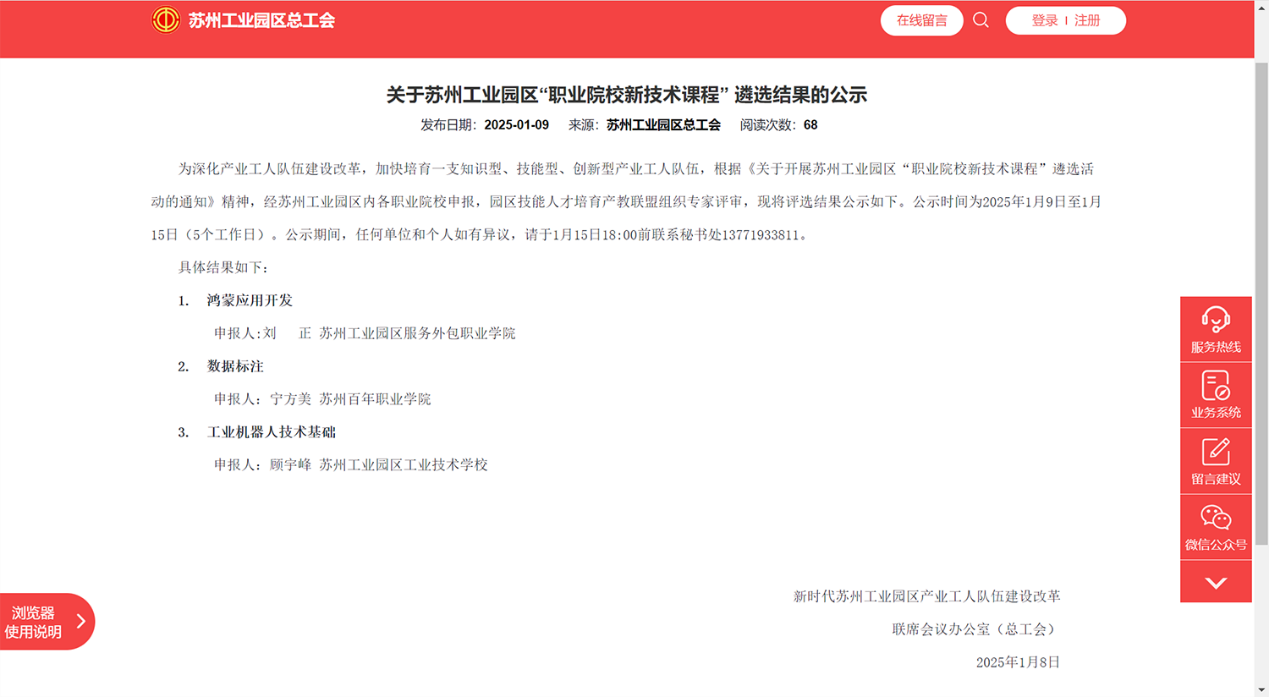 近日,苏州工业园区总工会揭晓“职业院校新技术课程” 遴选及 “三型” 工匠奖学金评选结果,开云kaiyun体育工学院成绩斐然。