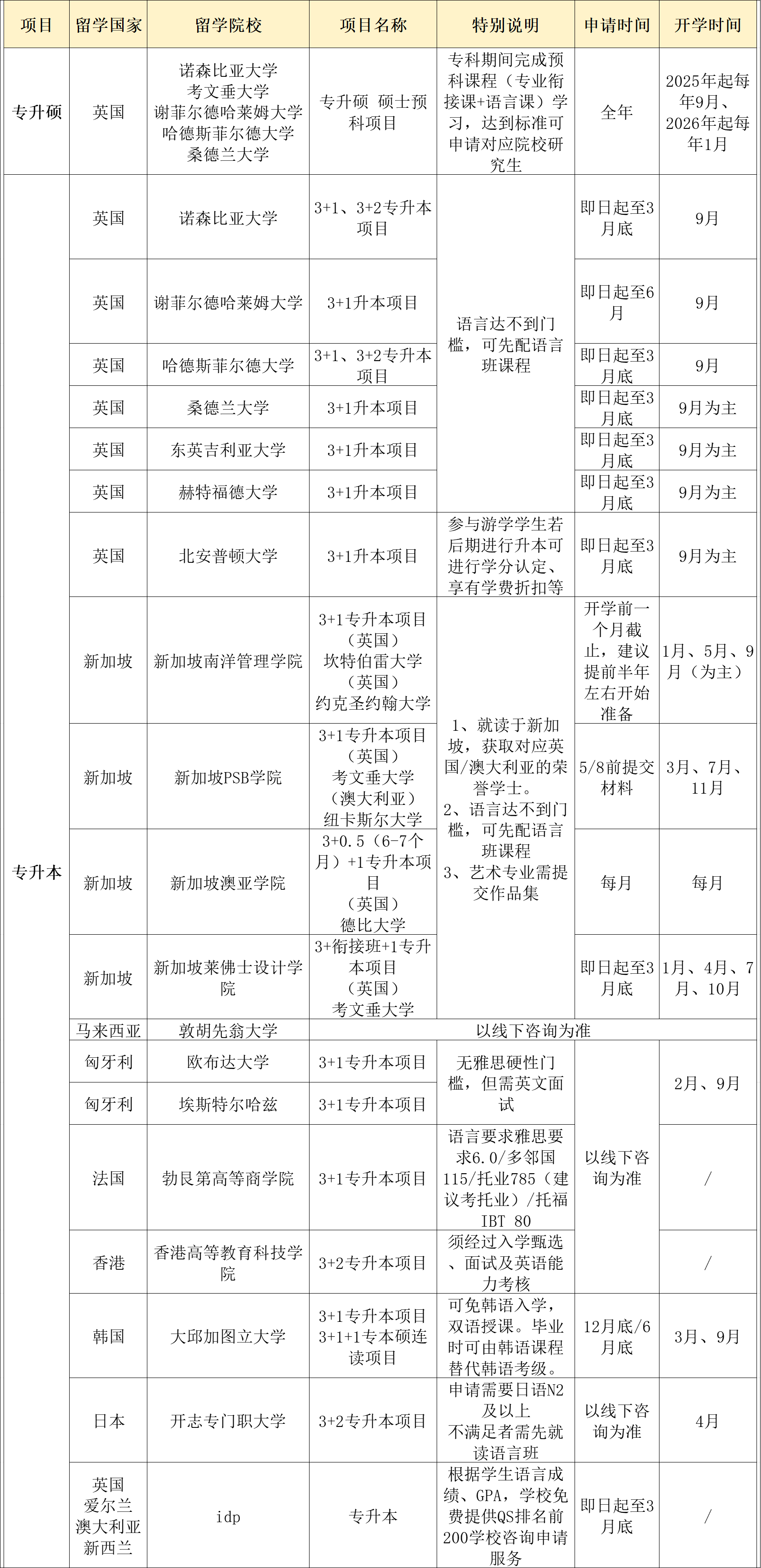 备注:以上仅供参考,具体项目详情请咨询海外教育学院。联系方式见下文。