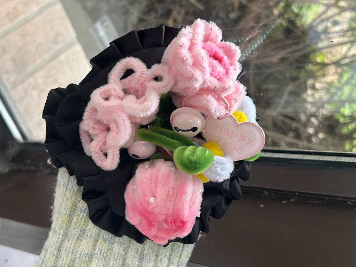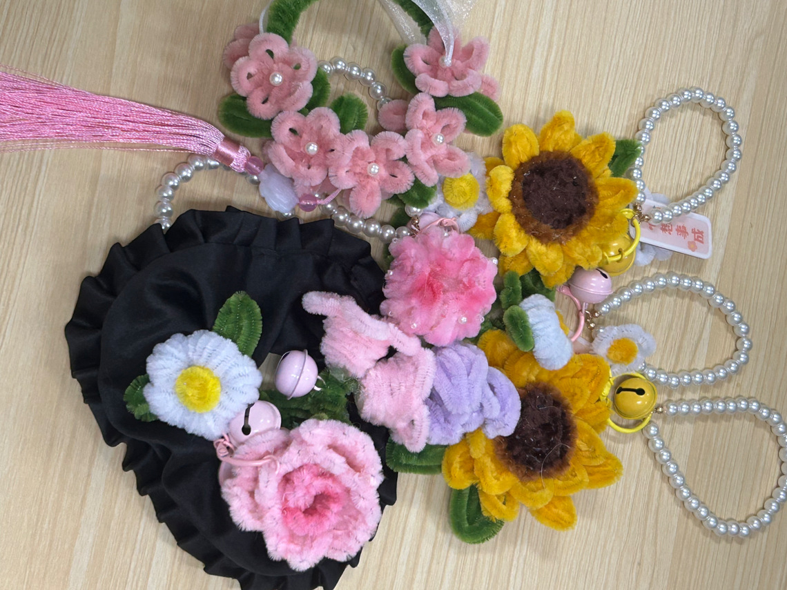 活动渐近尾声,大家纷纷将自己精心制作的扭扭棒手工花束相互馈赠,传递节日最美好的祝福。一朵朵饱含深情的手工花,承载着师生之间的真挚情谊,在校园中传递着无尽的温暖与关爱。