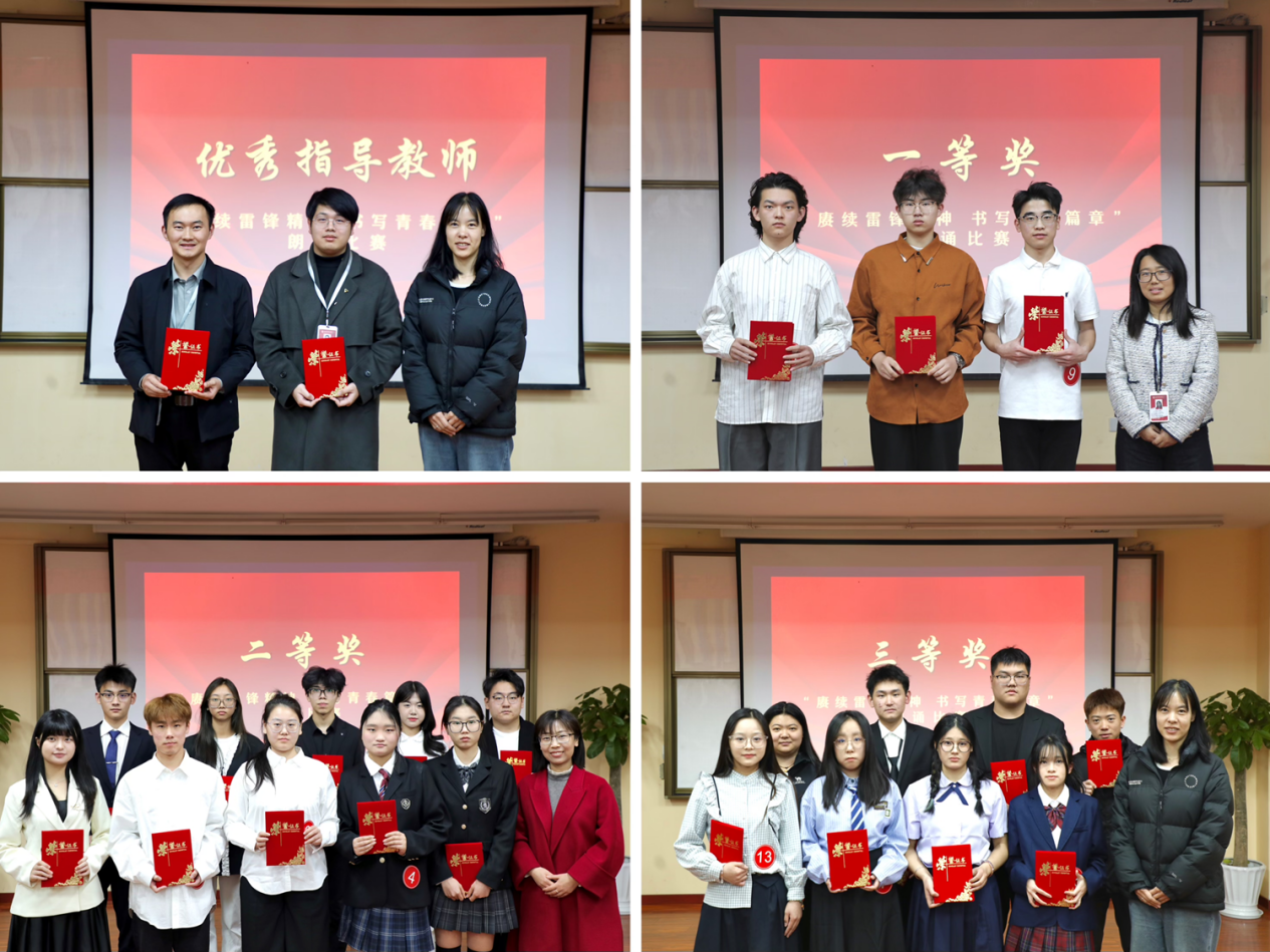 比赛现场,来自各二级学院的14组参赛选手依次登台,紧扣主题,用真挚的情感与铿锵的语言,通过经典篇章朗诵、情景演绎等形式,将雷锋无私奉献的精神与当代青年的责任担当相融合,赢得现场观众阵阵掌声。经过激烈角逐,工学院的柴铁城、曹酉成、席浩轩凭借真挚的情感表达和精湛的朗诵技巧脱颖而出,荣获一等奖。
