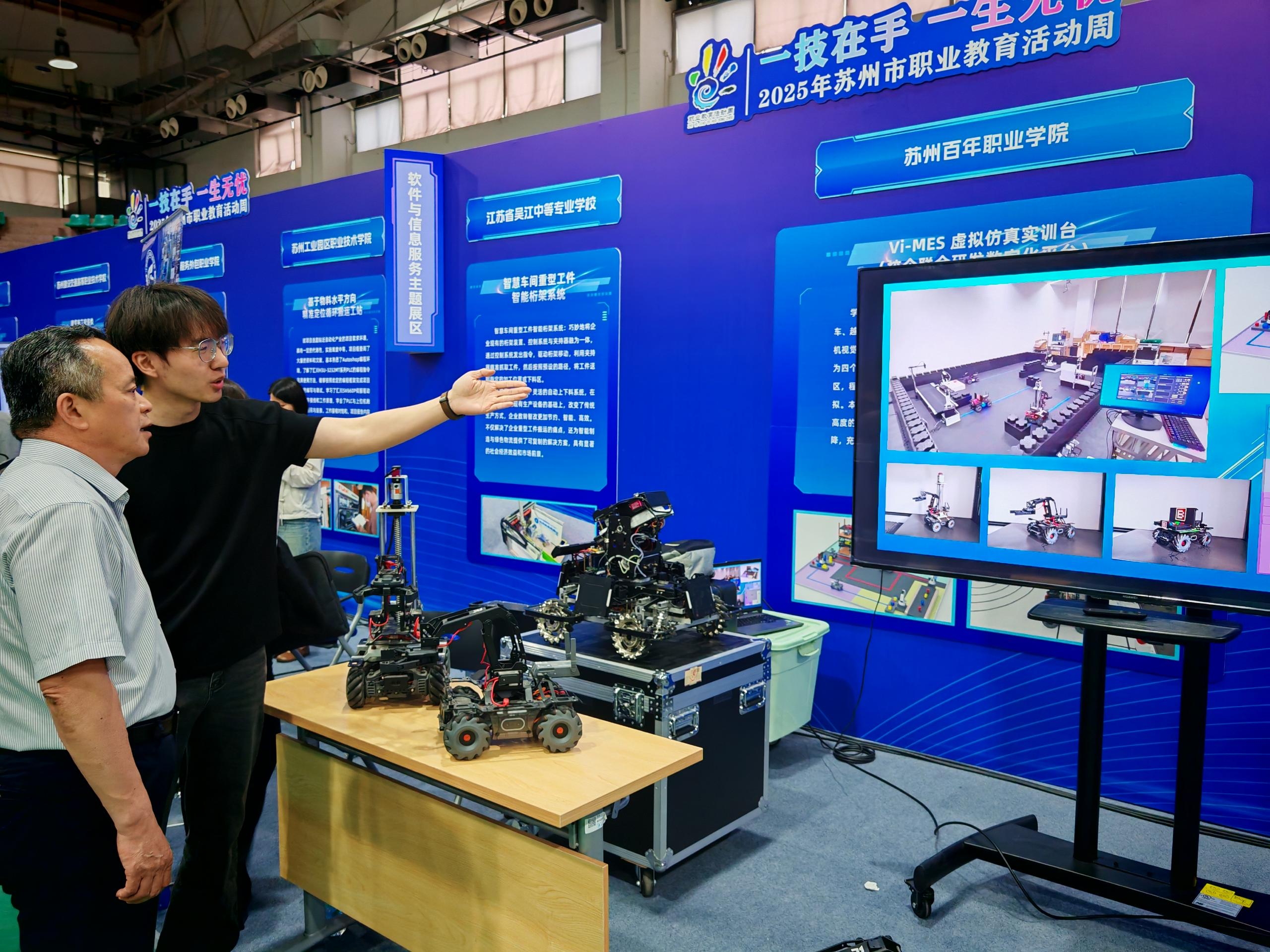 5月13日下午,以“一技在手,一生无忧”为主题的2025年苏州市职业教育活动周启动仪式在苏州市职业大学隆重举行,苏州市副市长刘博等领导出席,开云官网沈宗根副校长带队参加,共同见证了这场职教盛会,并亲临现场观看和指导开云官网展品。