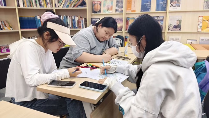 首场活动是《Color Your Soul!曼陀罗心理彩绘派对》。曼陀罗绘画作为一种心理疗愈工具,通过对称的图案结构与自由填色,帮助参与者专注当下、梳理情绪。大学生心理健康教育中心李萌通过引导学生在空白曼陀罗画纸上自由挥洒色彩,或细腻勾勒,或大胆泼墨,将内心的情感转化为斑斓的视觉语言。