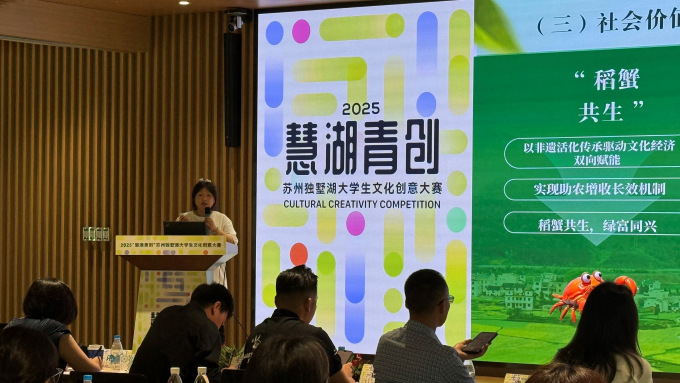 决赛现场,开云官网团队以“智绘乡链—AIGC驱动下的非遗活化与苏州湖八鲜产品经济生态重构计划”为参赛项目,聚焦苏州本土特色文化与产业。团队巧妙融合非遗文化精髓与湖八鲜产品资源,借助AIGC(人工智能生成内容)前沿技术,突破传统思维桎梏,为非遗文化活化传承与农产品经济生态转型升级提供了极具前瞻性的创新方案,充分展现出扎实的专业素养、卓越的创意构思和强大的实践能力,赢得了现场评委与观众的高度关注。
