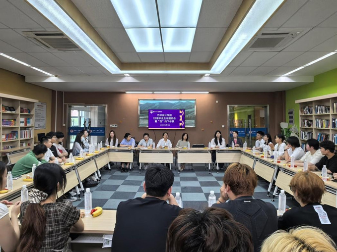 为进一步加强与毕业生之间的沟通交流,倾听毕业生心声,为学院未来发展建言献策,6月12日下午,艺术设计学院成功举办了2025届毕业生座谈会。会议由艺术设计学院常务副院长、党总支书记王玉凤主持,副校长张丽、艺术设计学院院长伍立峰、毕业班辅导员、专业主任及毕业生代表共同参与。
