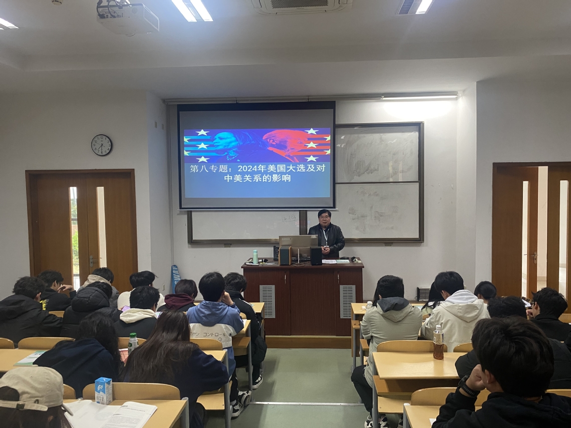 校党委书记孙红军围绕“2024年美国大选及对中美关系的影响”主题,以生动案例和详实数据,为工业互联网技术和智能控制技术班学生讲授形势与政策课。