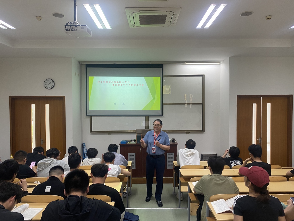 校党委副书记、纪委书记鲁伟围绕“中美贸易战与国际风云变幻——兼谈新质生产力的青年力量”主题,结合国际形势变化和国家发展战略,为软件技术班学生讲授形势与政策课。