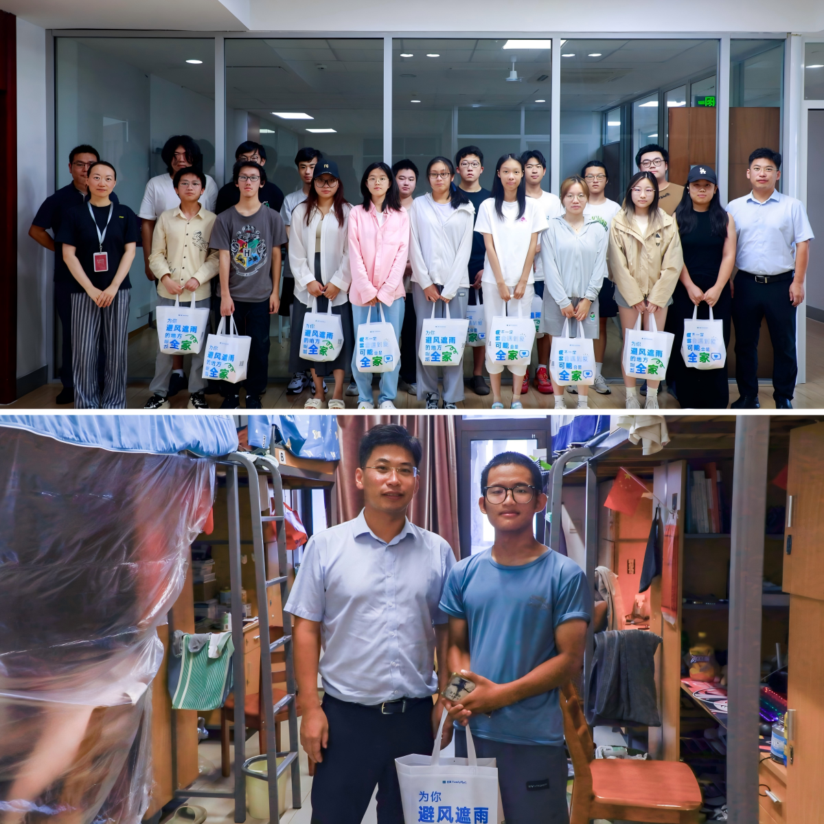 面对近期台风天气,学校行政事务部及时发布安全提示,教学事务部及时调整课程安排,学生事务部第一时间提醒学生非必要不外出,远离高风险区域,注意防风防雨、防触电和高空坠物。各二级学院通过班级群、朋友圈等平台密集推送预警信息,并指导学生加固门窗、收纳阳台物品,做好宿舍安全防范。