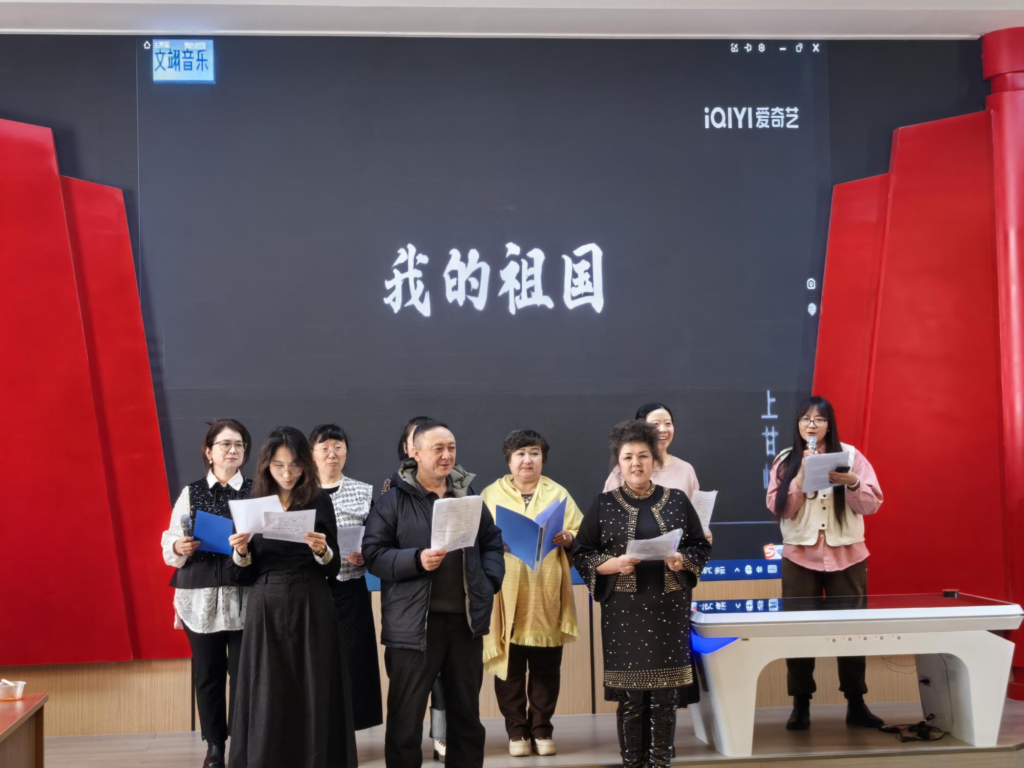 随后的节目表演环节更是精彩纷呈。《我的祖国》歌声悠扬,满含党员教师对祖国的深情;《七子之歌》献礼澳门回归 25 周年,寄托对盛世莲花的美好祝愿;手语舞《我们共产党人好比种子》生动展现党与人民的紧密联系;创新配音节目别出心裁,彰显文化创意的多元魅力;诗朗诵《又一年》则为全体教师送上真挚祝福。节目高潮迭起,掌声与欢呼声交织成曲,充分展现出马克思主义学院教师队伍的多才多艺、积极进取。