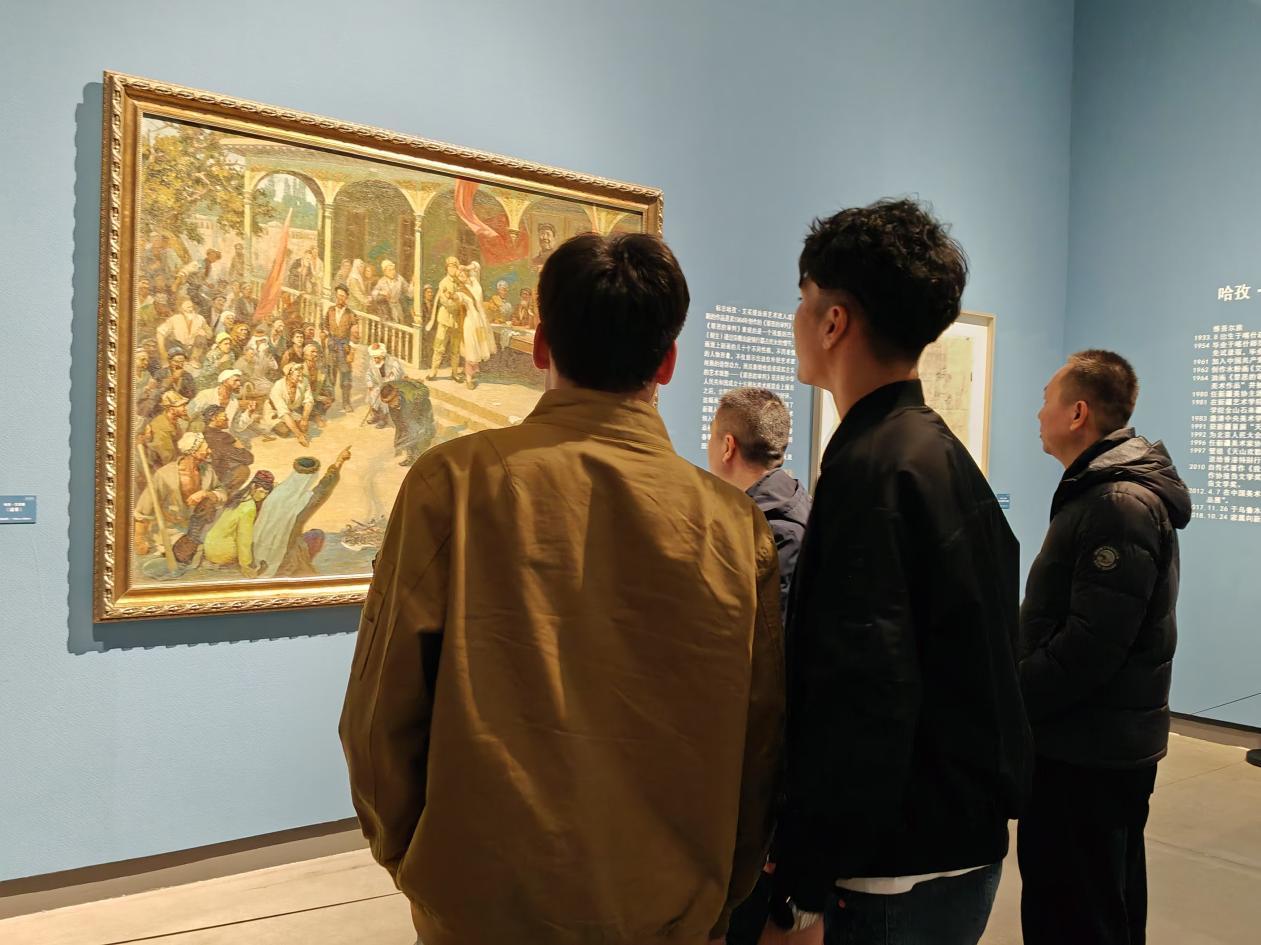 参观过程中,全体师生缓步穿行于时光雕琢的艺术长廊,领略中国传统绘画、现代艺术、雕塑等各种艺术形式;在一幅幅精美的艺术作品中感知历史笔触与当代视野交织的多彩,回味民族的记忆,领悟时代的变迁,追寻红色的历程,感受社会的进步。