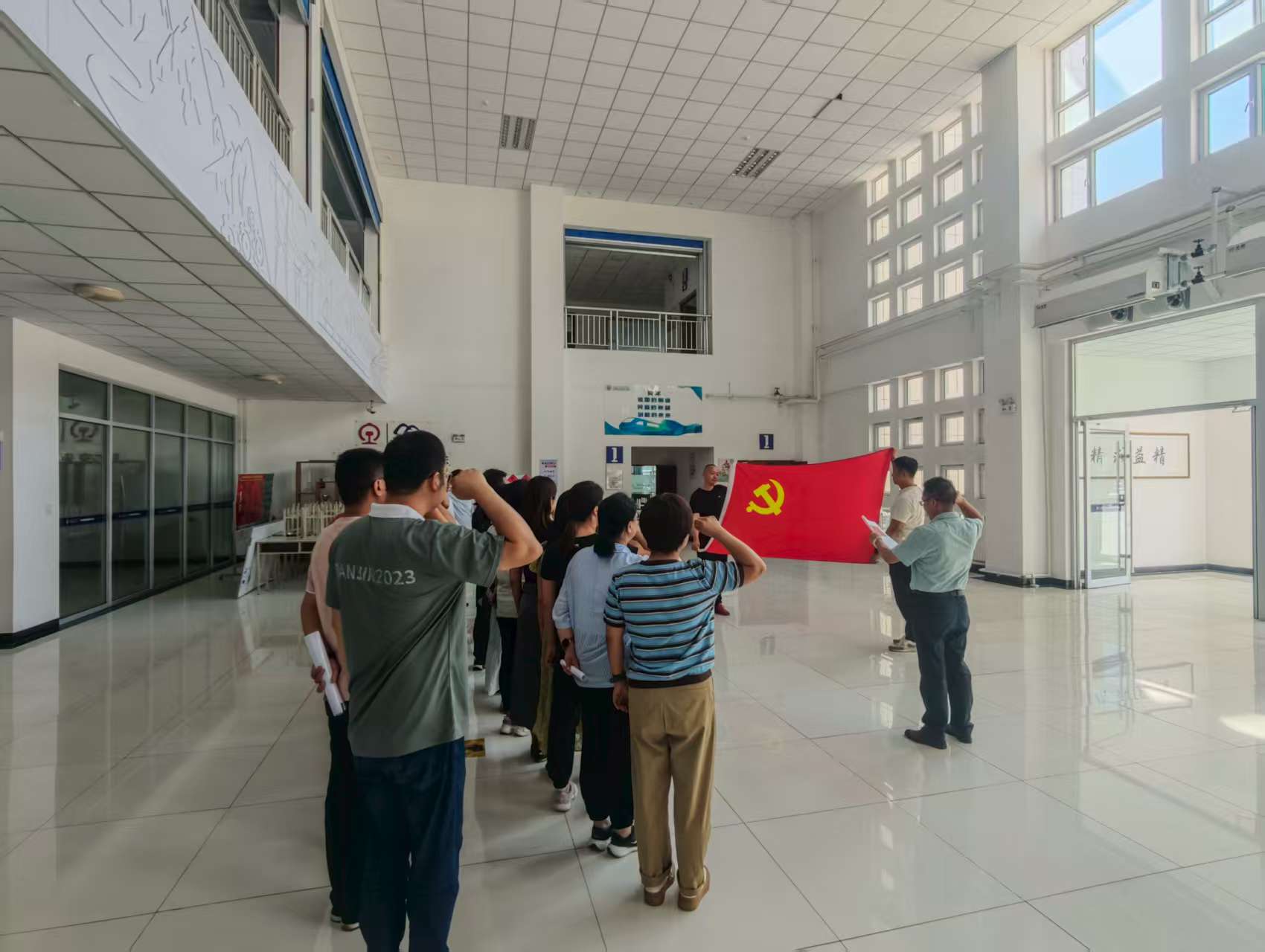 活动在庄严的氛围中拉开帷幕,全体党员整齐列队,面对鲜艳的党旗,重温入党誓词。“我志愿加入中国共产党,拥护党的纲领,遵守党的章程……”一句句铿锵有力的誓言,表达了党员们对党的无限忠诚和为共产主义事业奋斗终身的坚定决心。