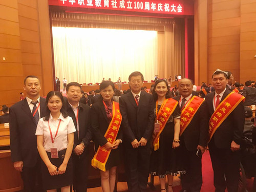 2017年5月5日,中华职业教育社成立100周年庆祝大会在北京召开。由中华职业教育社主办的“第五届黄炎培职业教育奖”评选活动结果在会上揭晓,并举行隆重颁奖典礼。新疆中华职业教育社推荐的四位职业院校老师全部获奖,乌鲁木齐市职业中等专业学校刘家君荣获杰出校长奖;新疆农业职业技术学院王新燕、新疆交通职业技术学院合尼古力·吾买尔、新疆维吾尔医学专科学校甫拉提·孜亚丹荣获杰出教师奖,自治区人大常委会副主任、新疆中华职业教育社主任董新光;自治区党委统战部干部处处长、新疆中华职业教育社秘书长带队出席大会,并向获奖个人表示祝贺。