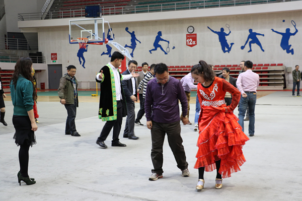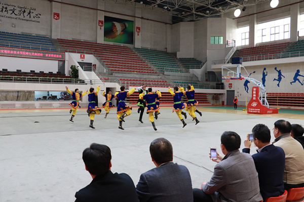 座谈会后,学院领导陪同博士服务团一同参观了学院汽车大工间、电梯实验室、道桥土木实训中心等实训场地,博士团代表对学院实验实训条件和校园建设予以了赞扬。在文体中心,由学生“麦西来甫社团”组织的别具新疆特色的民族歌舞表演赢得了博士团成员的一致好评,博士团成员与各民族同学一起载歌载舞,了解新疆人文文化,结识不同民族好朋友,谱写民族团结之曲,立下 “像石榴籽那样紧紧抱在一起”的庄严承诺。学生们看见博士代表团的博士们不仅才华横溢而且年轻富有朝气,崇拜之情溢于言表,都暗自下定决心,要发奋读书,为自己的理想而奋斗!