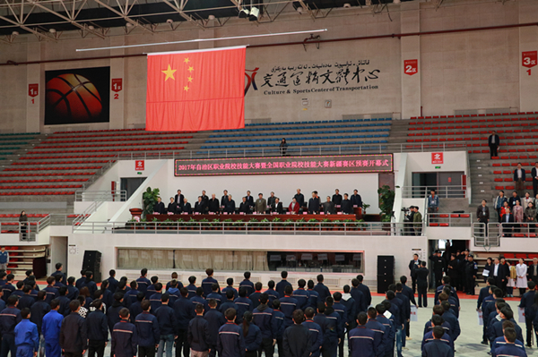 4月8日,2017年自治区职业院校技能大赛暨全国职业院校技能大赛新疆区预赛开幕式在我院隆重举行。新疆维吾尔自治区党委常委、区政府副主席,自治区教育工作委员会副书记艾尔肯•吐尼亚孜同志出席开幕式并讲话;新疆维吾尔自治区人民政府副主席马敖•赛依提哈木扎同志宣布大赛开始;新疆维吾尔自治区人民政府副秘书长于欢同志主持开幕式。