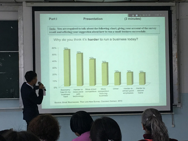 本次大赛为新疆高职高专英语教学搭建了一个探索教学改革、交流教学经验的平台,有力推动了高职院校学生英语口语水平的提高,我院将以此次大赛为契机,“以赛促进、以赛促学、以赛促改”,继续扩展、夯实学生英语基础知识和基本技能,推动我院大学英语及专业英语教学再上一个新台阶。