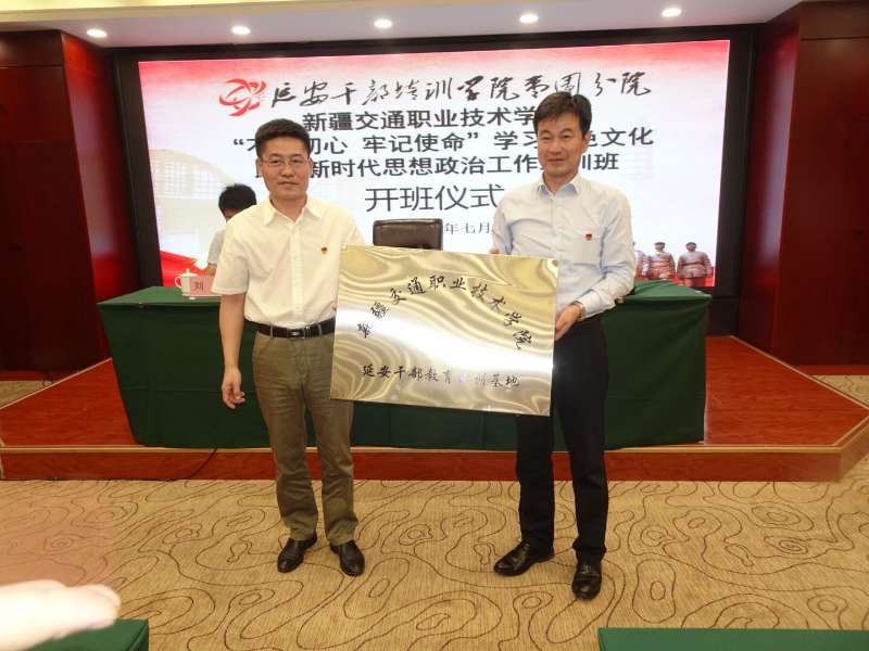 延安是中国革命的摇篮,是共产党员的精神家园。党中央在延安的13年,是中国共产党革命斗争最关键、最艰难的时期,也是中国共产党由小到大、由弱变强、革命事业由挫折走向胜利,取得辉煌成就的历史时期。党在这里的奋斗历程为我们留下了一笔宝贵的财富,那就是“延安精神”。这种精神不仅是我们党的传家宝,也是我们党推进各项工作,取得辉煌成就的强大精神动力。延安干部培训学院枣园分院具有丰富的红色教育资源,优秀的师资队伍和科学的管理经验。为加强学院干部教育培训工作力度,学院党委决定在枣园分院建立新疆交通职业技术学院干部教育培训基地。在本次开班仪式上,学院在延安干部培训学院枣园分院举行了授牌仪式,利用干部培训基地,学院将陆续组织党员、干部、教师来基地培训学习,以强化“为党育人为国育才”导向,推动学院党员干部教师自觉担负起培养爱国爱疆、担当奉献的社会主义建设者和接班人的责任。