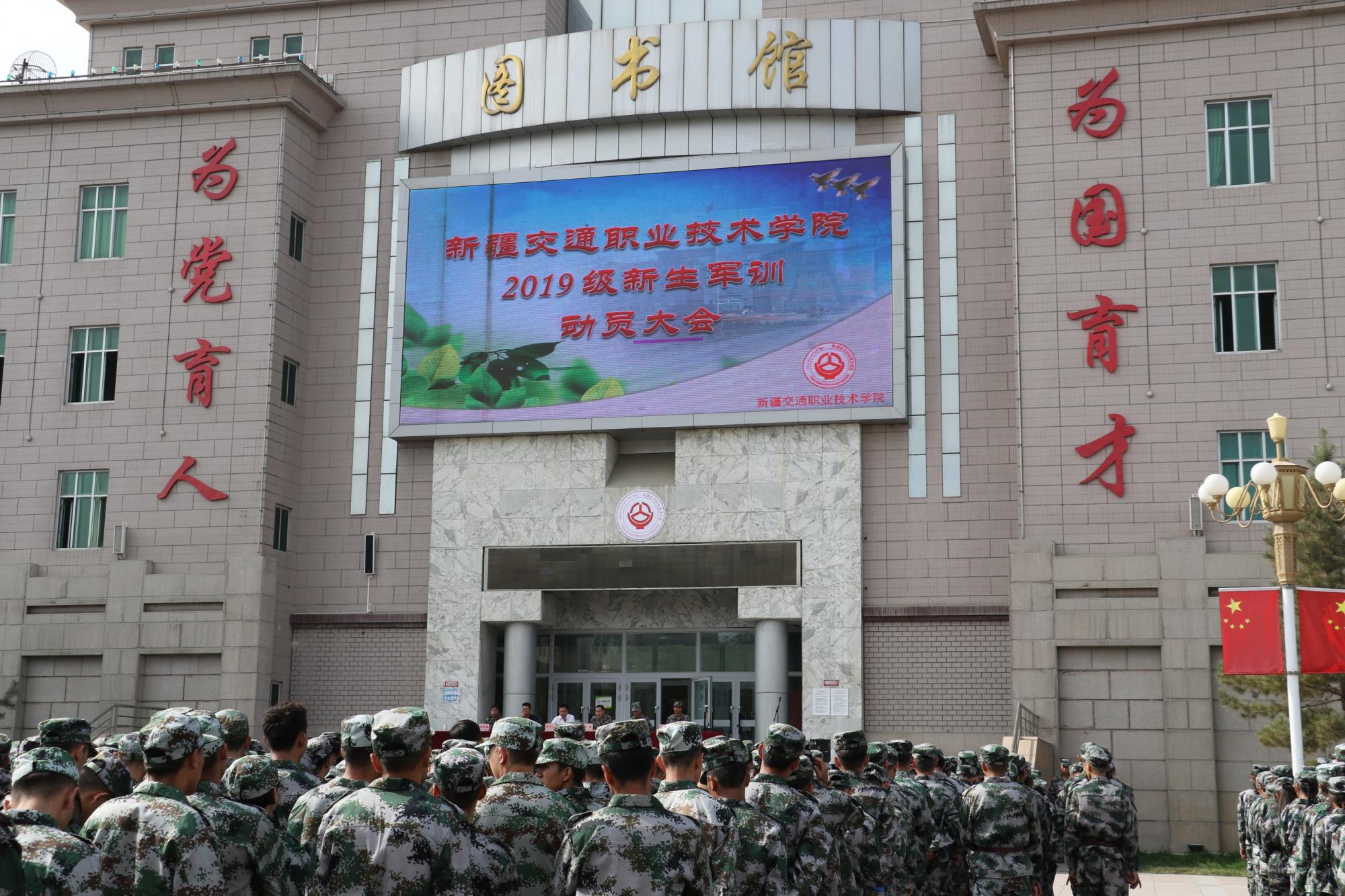 9月3日上午,新疆交通职业技术学院2019级新生军训动员大会在学院图书馆前举行,学院党委副书记苏中洋出席并讲话,学院学保党支部书记张军主持大会。为期15天的军事训练正式拉开帷幕。