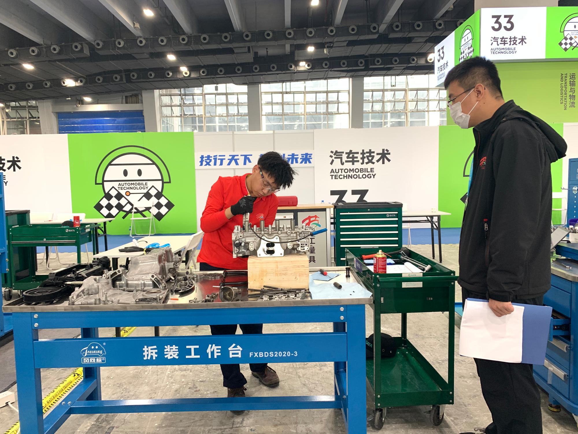 汽车技术项目共有33个代表队参赛,是本次大赛参赛人数最多、竞争最为激烈的项目,包含发动机管理、发动机诊断、车身电气、电气构建、制动系统、定位转向与悬架系统、发动机测试、发动机测量和新能源汽车9个模块,涉及7种不同的车型,对选手综合技能考核有极高的要求。为了备战本次大赛,学院一年前就开始组建队伍选拔参赛选手,打造教练团队根据选手的特点制定详细周密的训练计划,并通过前往山东、重庆等多地开展赛前集训补短板、强技能,有的放矢的开展训练,为选手在本次大赛获得佳绩奠定了坚实的基础。