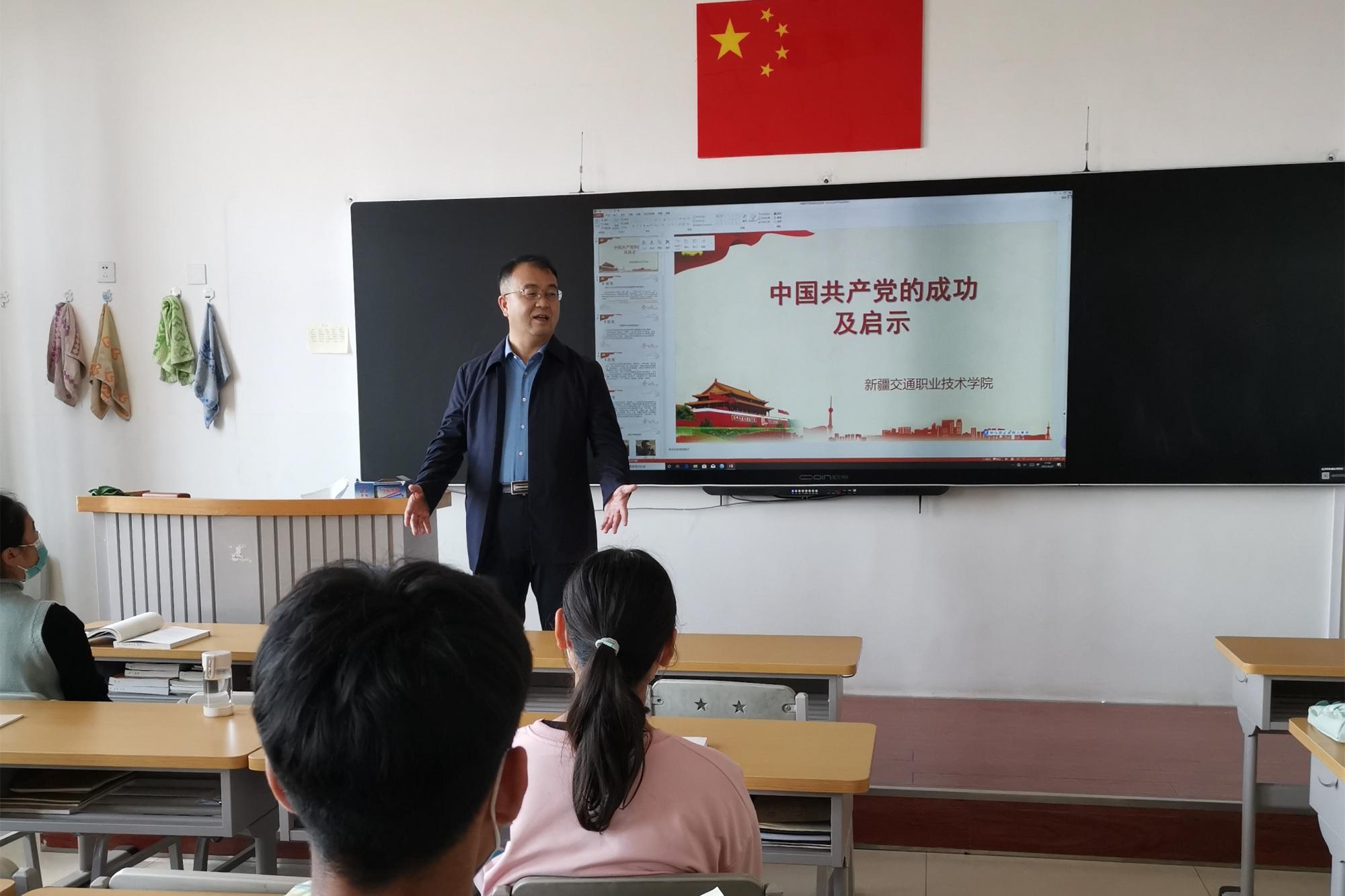 课上,何朴院长与同学们进行亲切互动,通过讲解党的历史启发学生们的报国志,提出了新时代青年学生的责任与担当。何院长勉励各族同学坚定理想信念,担当新使命;深怀爱国之情,展现新作为;服务新疆大地,贡献新力量。他希望同学们秉承“励学笃行”的校训精神,树立强烈的学习意识、培养乐于学习的情操、锻造勤学苦练的品格、秉承学贵有恒的毅力,注重日常积累、注重总结思考、注重学以致用,把实现中华民族伟大复兴的中国梦与实现个人价值的梦想融合在一起,施展才华、建功立业,为国家富强、家乡繁荣奉献自己智慧和力量。