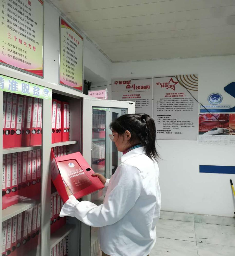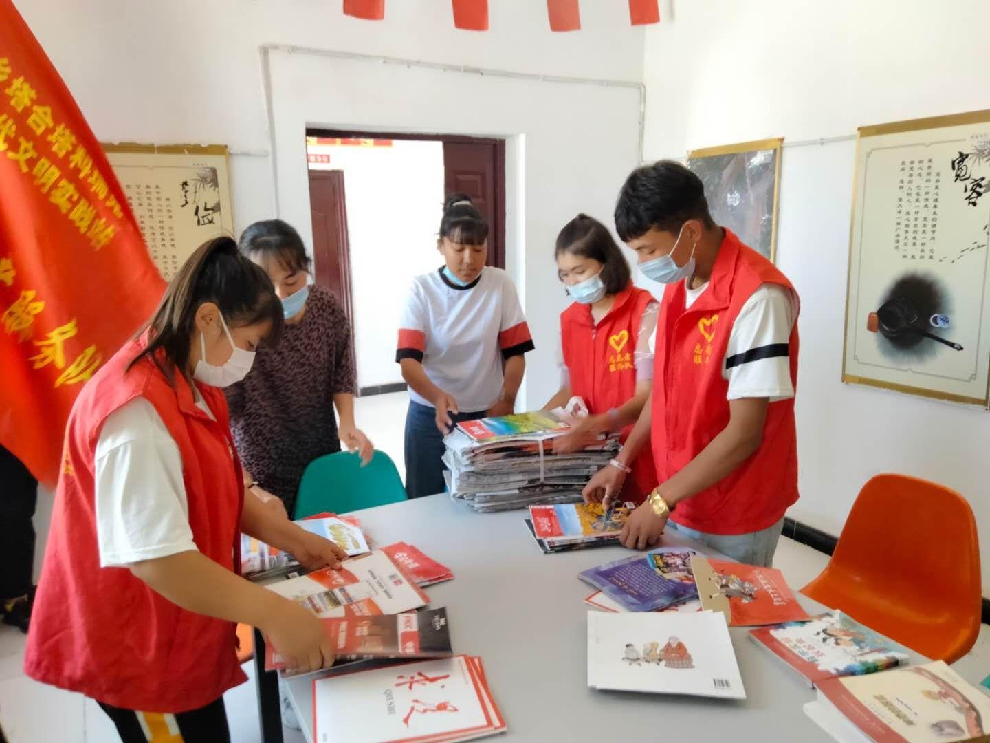 预科16班祖丽皮亚木.吐尔逊和志愿者们一起协助整理学生们的学习材料