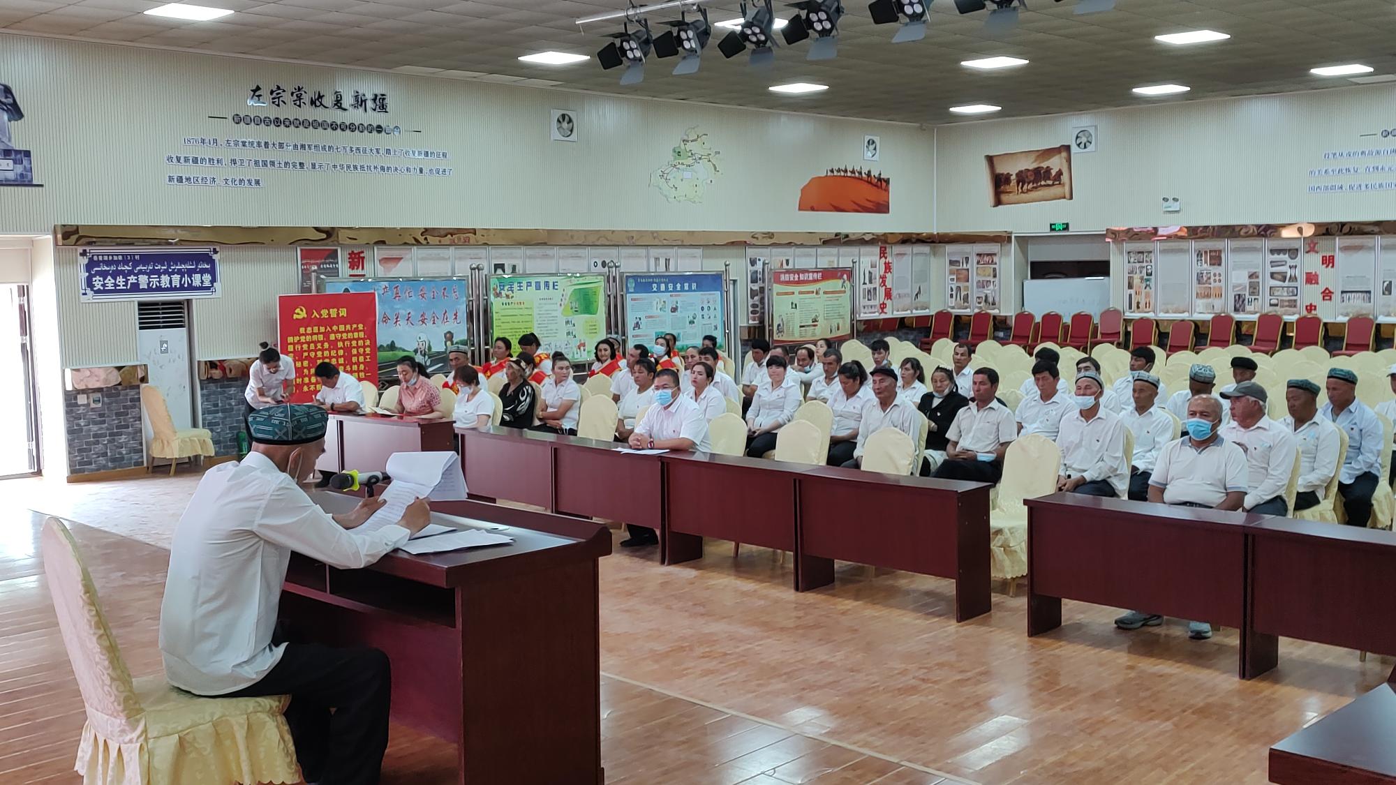 一次入党宣誓。加依3村“访惠聚”工作队第一书记曹兴举带领全体党员面对鲜红的中国共产党党旗,举起右手、握紧拳头,重温了入党誓词,坚定了听党话、跟党走,薪火相传、接续奋斗的信念与决心。