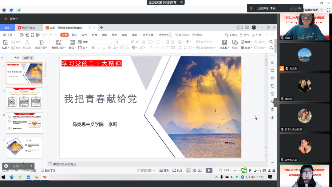 举办“青马论道•朋辈论坛”“学习二十大 青马学员说”专题分享会,邀请到了昌吉学院、江苏海事职业技术学院团学骨干云端相聚,共话成长