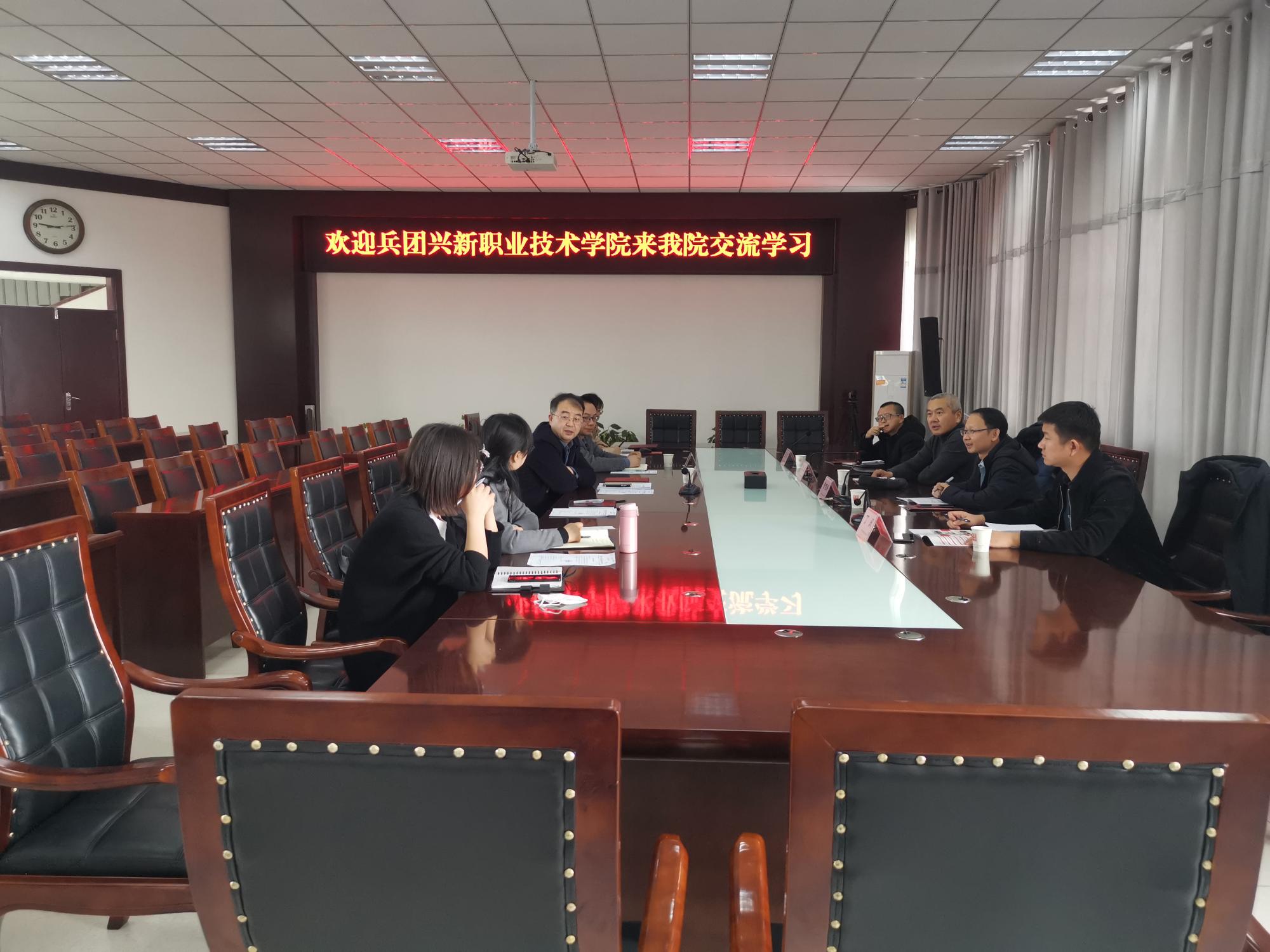 2月2日下午,兵团兴新职业技术学院院长王林一行4人来我院学习交流。学院党委副书记、院长何朴出席并主持会议。