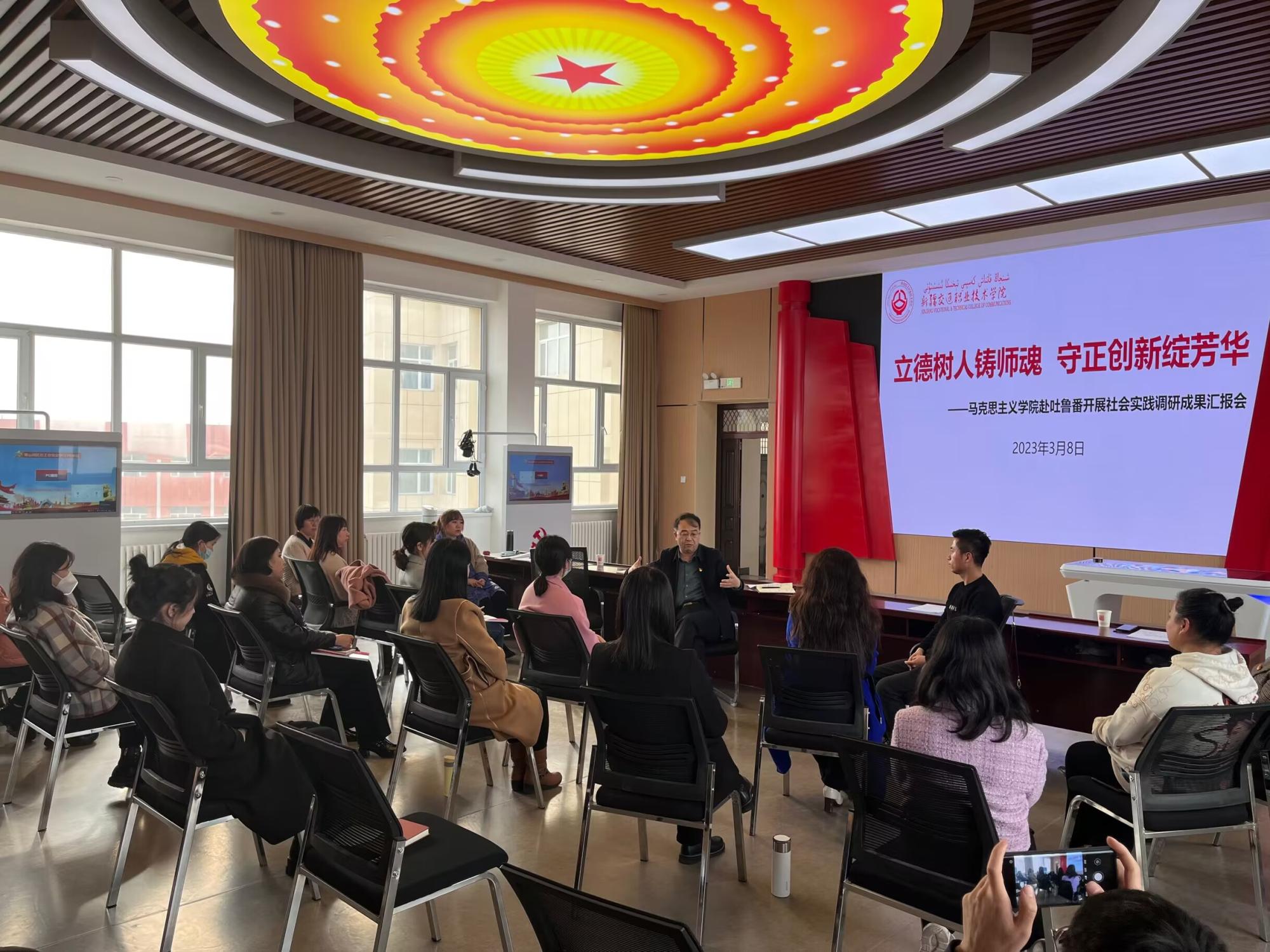 3月8日下午,马克思主义学院在思政虚拟仿真教学体验中心开展了“立德树人铸师魂 守正创新绽芳华——马克思主义学院社会实践调研成果汇报会”。学院党委副书记、院长何朴出席活动并讲话。