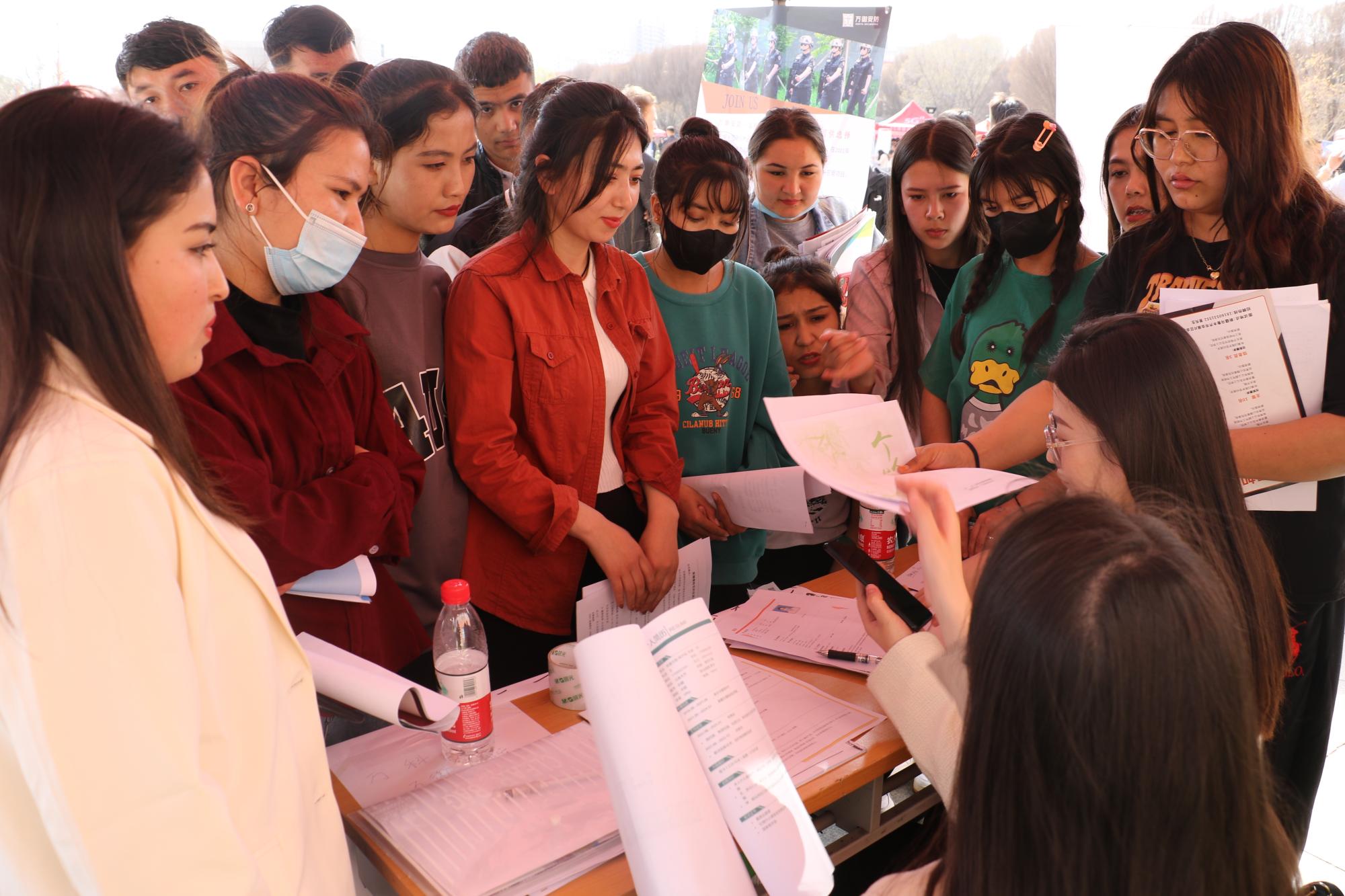 招聘会现场井然有序、气氛热烈,4500余名学生踌躇满志,双方从企业情况、主营业务、薪资待遇、职业规划等方面互动交流,进一步开拓了学生的就业视野,让毕业生在行业认知和岗位认知上更加清晰。机电工程学院城电D211班杨佳佳说:“今天招聘会的规模很大,企业数量很多,岗位丰富,不仅有乌鲁木齐的很多企业,还有来自吐鲁番、昌吉的企业和事业单位招募人才,我感觉对未来更有信心了。”