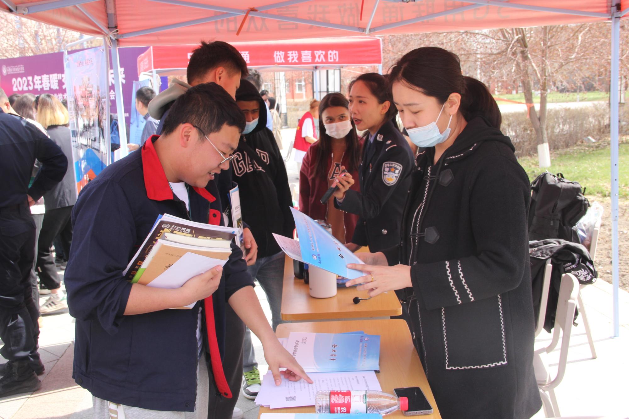 本次“春暖交院,职引未来”大型综合招聘会吸引了新疆中泰(集团)有限责任公司、国药新疆新特药业有限公司、乌苏市公安局、新疆碧罗珠宝有限责任公司、中国人寿保险股份有限公司乌市分公司、乌鲁木齐天汇博望丰田汽车销售服务有限公司、新疆斑马广告有限公司等150余企事业单位,提供了2560余就业岗位,所招岗位紧密对接学院相关专业,涉及机械、电子、建筑、物流、电子商务、造价、广告传媒、信息科技、酒店、汽车、房地产等多个行业类型,为学院2020、2021届4500余名学生提供了丰富的选择。