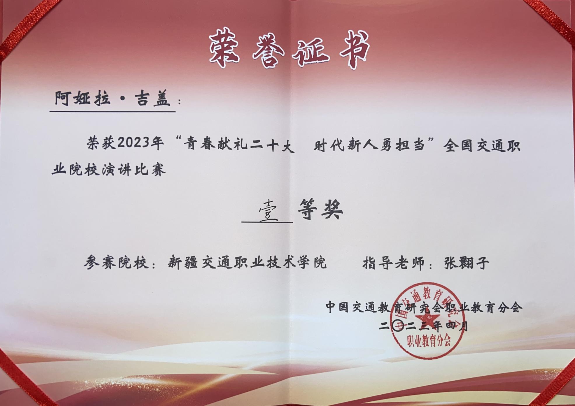 喜报!我院学子在“青春献礼二十大 时代新人勇担当”全国交通职业院校演讲比赛中获一等奖