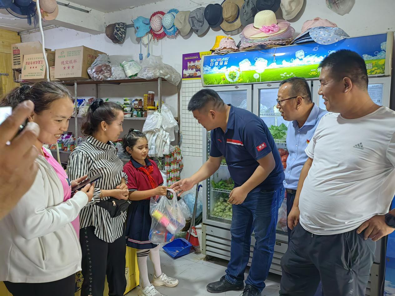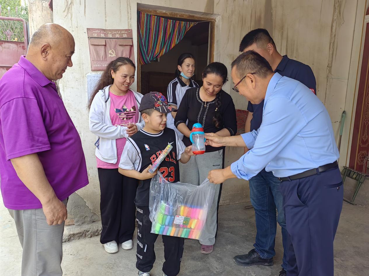 6月4日,新疆交通职业技术学院“访惠聚”驻村工作队开展残疾儿童慰问活动,为加依村残疾儿童捐赠了学习用品、玩具、水杯等慰问物资。