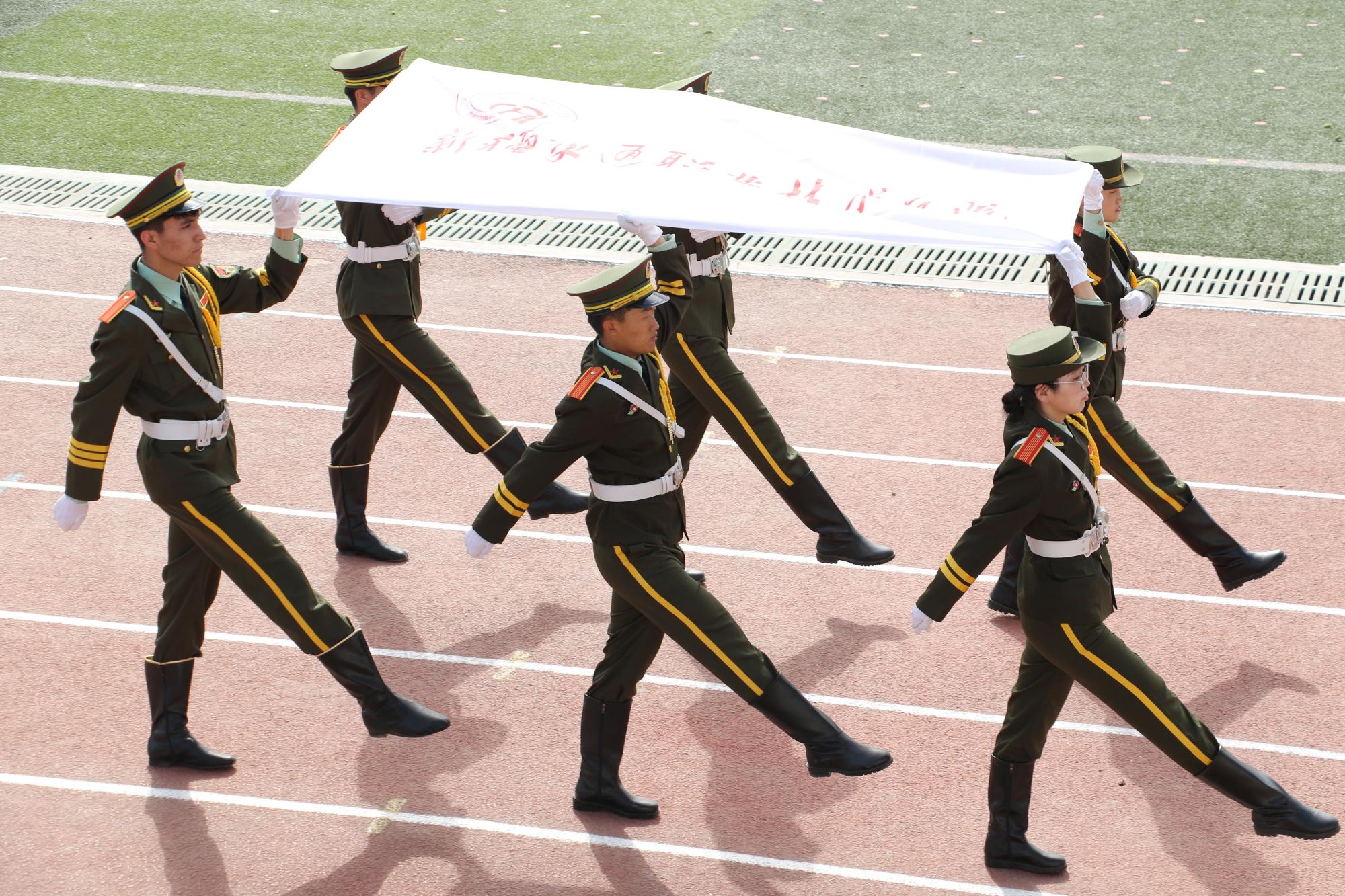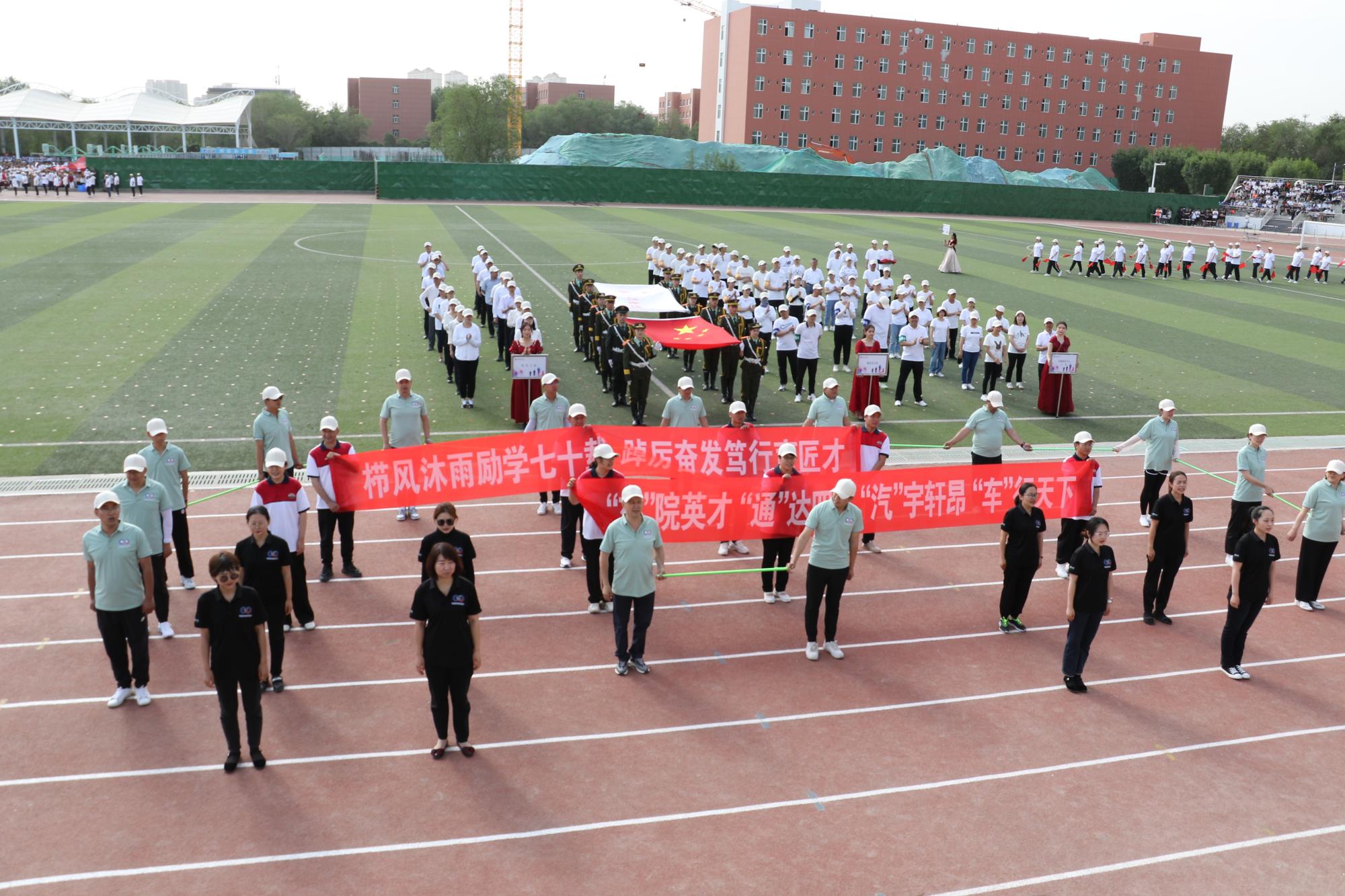 伴着激扬的旋律,国旗方阵踏着整齐的步伐,昂首阔步走向主席台,吉祥物方队、裁判员方队、各工会教师方队精神饱满、气宇轩昂,充分展现了新疆交职院教师积极向上的精神面貌;各学院学生入场方队高喊着各学院富有特色的口号,展现各学院办学特色和独有风采,形态优美的群舞、民族舞、街舞、啦啦操等特色体育舞蹈等学生节目精彩纷呈、别具匠心、活灵活现,充分展示了新疆交职院师生各有所长的优秀素质,也反映出校园文化的多样与包容。