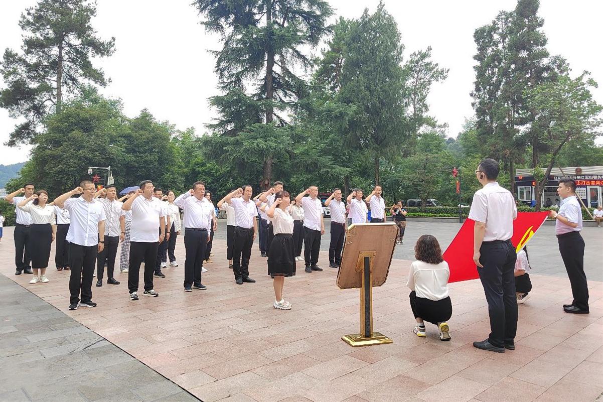 全体党员来到红军烈士陵园,在巍峨的红军烈士纪念碑前,全体党员干部庄严肃立,怀着崇敬的心情向革命先烈敬献花篮,深切缅怀先烈为争取民族解放、国家独立、人民幸福付出的巨大牺牲和建立的不朽功勋。全体党员面向党旗、整装列队、高举右手,铿锵有力地重温入党誓词。在解说员的引导下,党员们有序瞻仰了纪念碑、邓萍烈士墓、红军英烈墙、红军坟,聆听了邓萍、龙思泉等革命先烈的感人故事并进行现场教学。