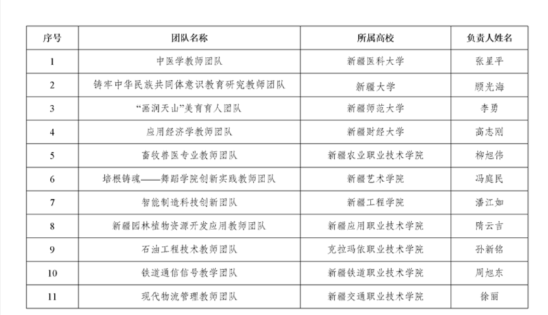 石榴云/新疆日报讯(记者 赵西娅报道)日前,经自治区教育厅评审、公示,我区高校11个团队入选自治区“黄大年式教师团队培育团队”。