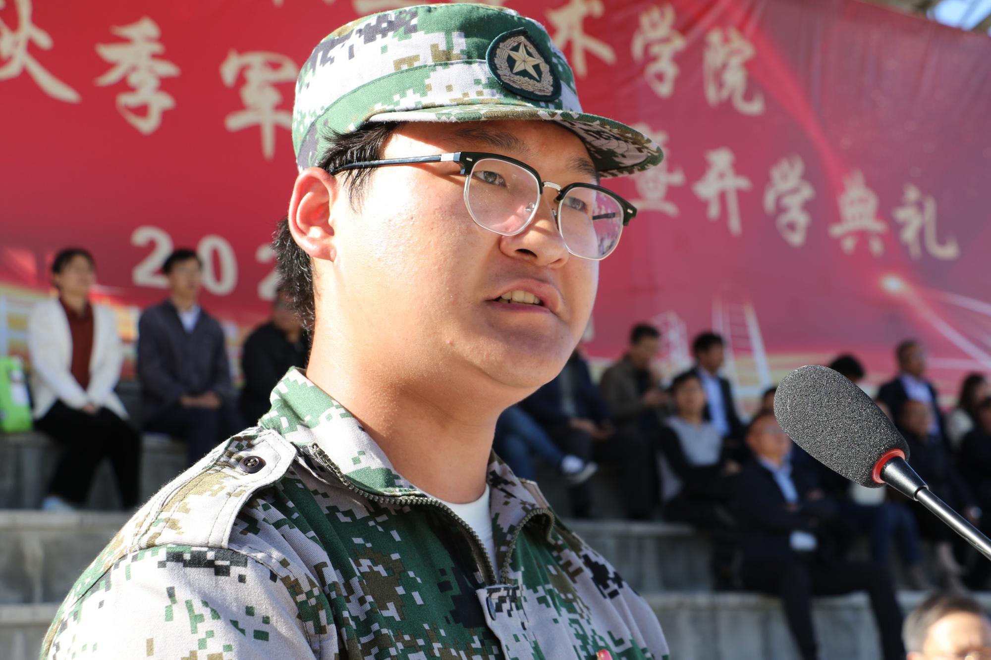 机电工程学院2023级新生李卓恒作代表发言,他说:“作为新时代的中国青年,我们生逢其时,重任在肩,施展才干的舞台无比广阔,实现梦想的前景无比光明,我们定要不负时代所托,建功新时代,奋进新征程”。