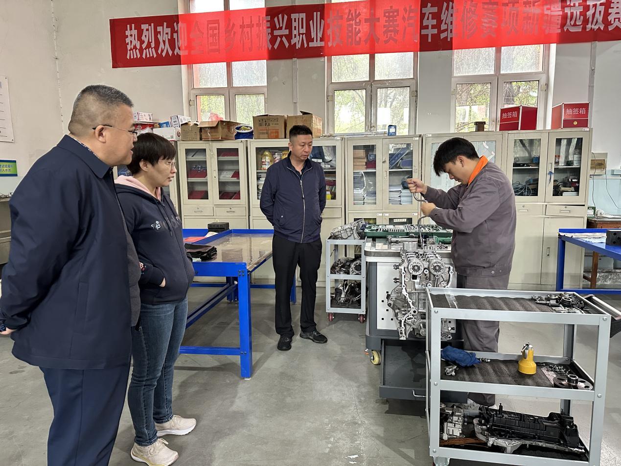 4月26日,学院党委委员、副院长曹兴举一行前往汽车工程学院备赛集训现场,看望正在紧张备战第二届全国乡村振兴职业技能大赛汽车维修赛项的指导教师和参赛选手。