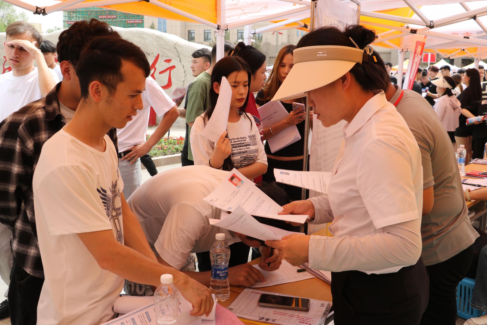 汽车工程学院汽车技术服务与营销专业古再丽努尔·托合提斯依提和同学来到招聘会现场投递简历,“学校举办招聘会,为我们提供这么多优质企业,缓解了我们就业的压力,实实在在地解决了一部分同学的就业问题,让我们对就业充满信心,我今天也投了几份简历,现在正在等面试通知。”