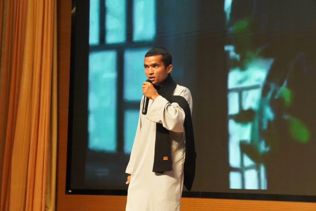 运输管理学院城运D231班马合沙提·胶的拜依和城运D221班柯晶同学为观众们带来坚守海拔4655米的詹娘舍哨所官兵的感人故事;《青春中国》中交院学子用抑扬顿挫的声音、用青春的热血表达对祖国的热爱;人工智能工程学院的同学们朗诵了《美丽中国》,他们的声音充满了对这片土地的热爱和敬仰;机电工程学院无人机D231班侯力超朗诵的《满江红》将岳飞“壮志饥餐胡虏肉,笑谈渴饮匈奴血”的豪情壮志表现得淋漓尽致,使得老师和同学们再一次的感受到了岳飞那种坚定的爱国情怀,现场一次次响起雷鸣般的掌声。
