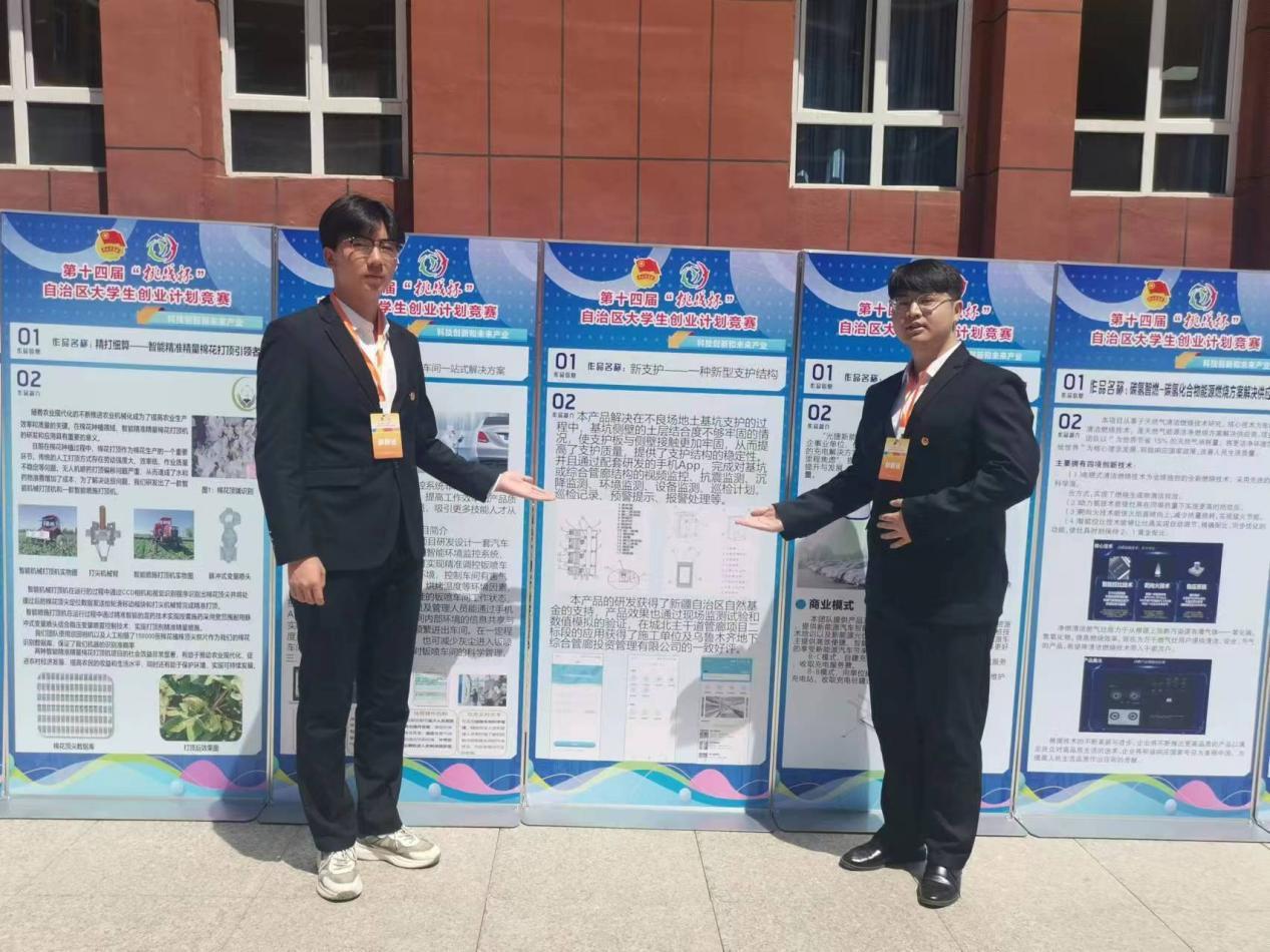 在本次大赛中,我院共申报项目团队25个,经过专家评选打磨,5个项目团队进入省赛。经过激烈角逐和同台比拼,最终道路桥梁工程学院项目团队《新支护——一种新型支护结构》、汽车工程学院项目团队《好“漆”待—智能健康钣喷车间一站式解决方案》分别斩获第十四届“挑战杯”新疆大学生创业计划竞赛铜奖。